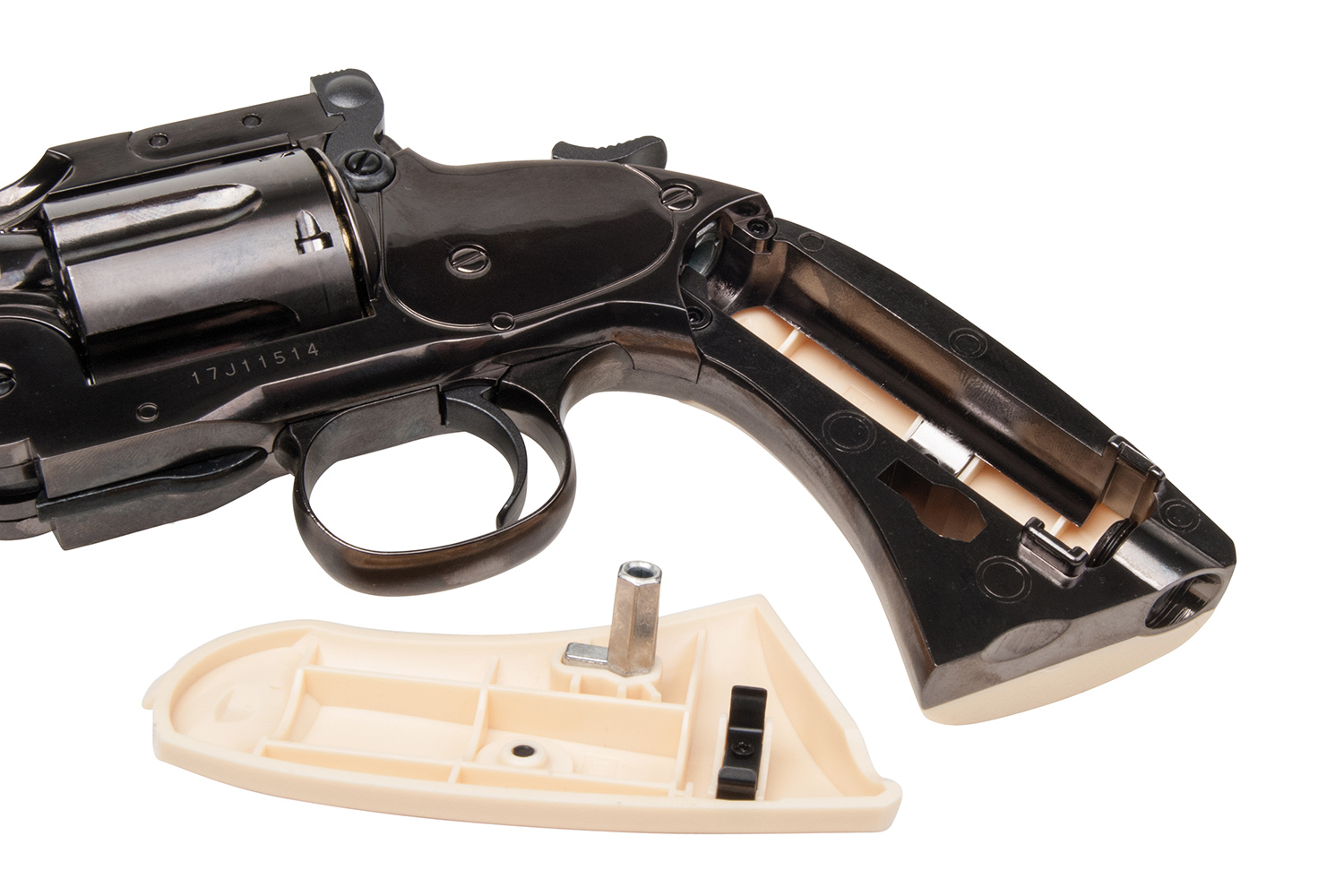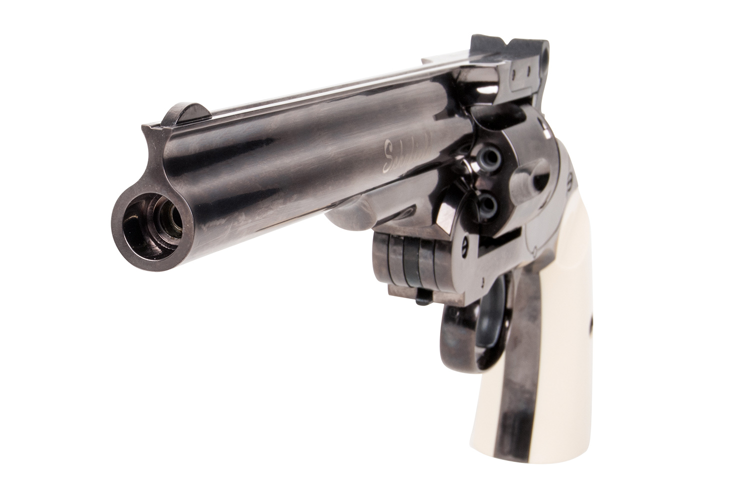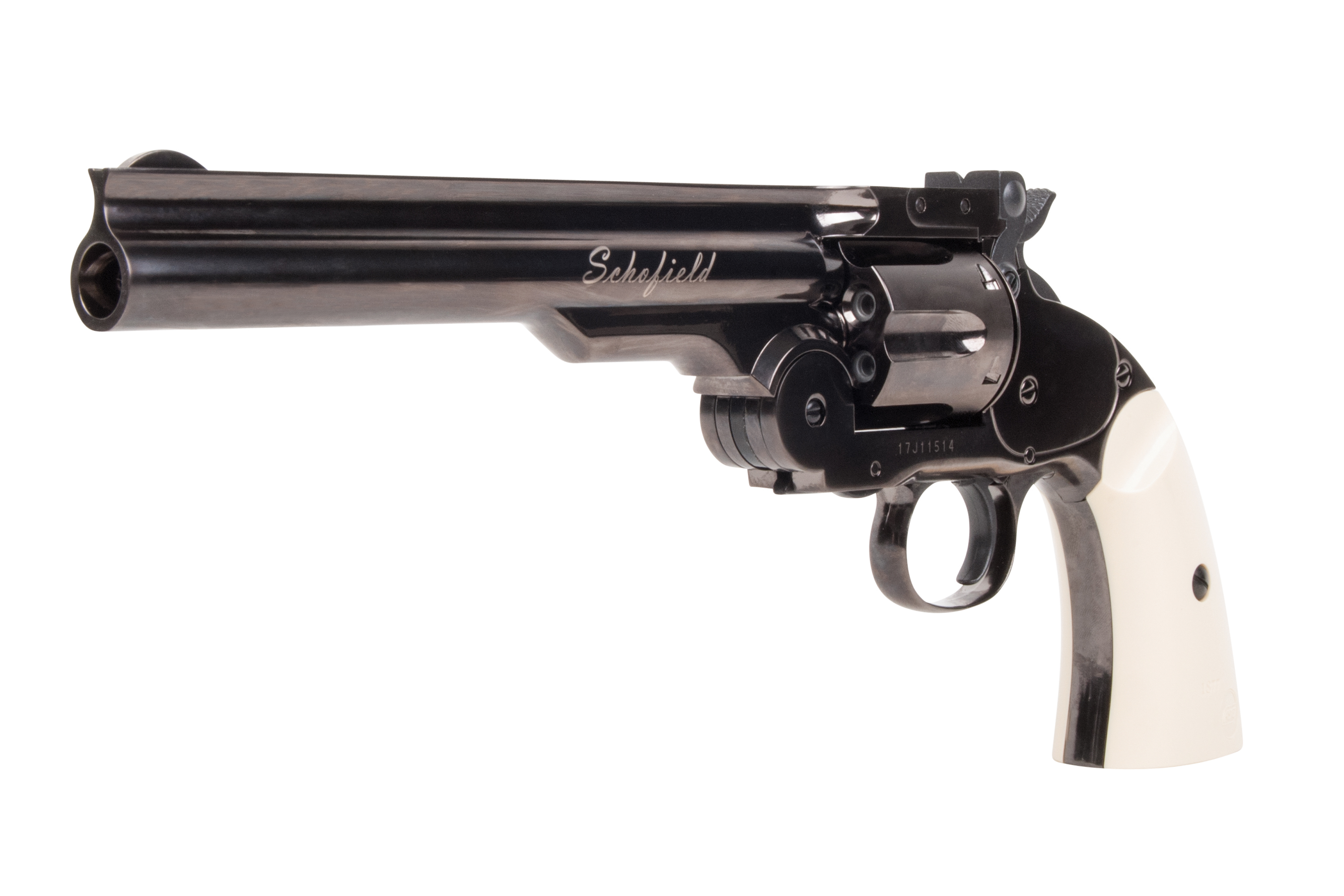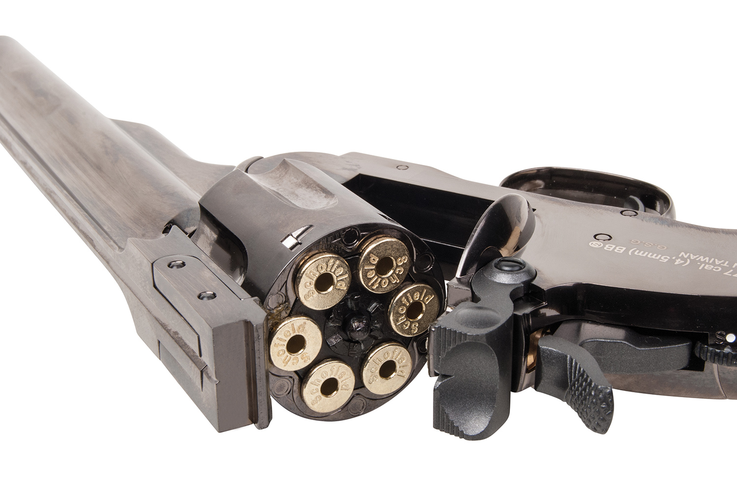 Der im Ursprung von Major Schofield der U.S.-Army konzipierte Revolver verschießt sowohl Diabolos als auch BB's, je nach eingesetzer Hülse. Die Hülsen für Diabolos sind optional erhältlich. Die Trommel und der Lauf lassen sich mit einer Handbewegung abknicken. Das System drückt die Hülsen aus der Trommel und ermöglich so einen schnellen Ladevorgang. Das hohe Gewicht des Vollmetall-Modells und die gute Verarbeitung lassen nicht nur Sammlerherzen höher schlagen.