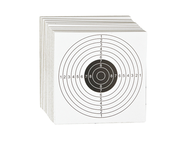 100 Stück Papier-Zielscheiben von ASG mit 10er Ringeinteilung im Format 14 x 14cm.