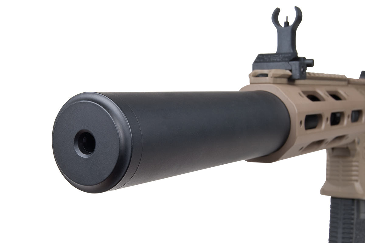 Die hochwertig verarbeitete S-AEG Waffe aus dem Hause ARES wird aus robustem Nylon Fiber gefertigt. Der Vorderschaft besteht aus Metall. Den Schiebeschaft kannst du individuell einstellen oder auch komplett rausziehen, wenn z.B. der Akku getauscht werden muss. Bequemer Sitz im Anschlag dank der breiten und geriffelten Schulterstütze.