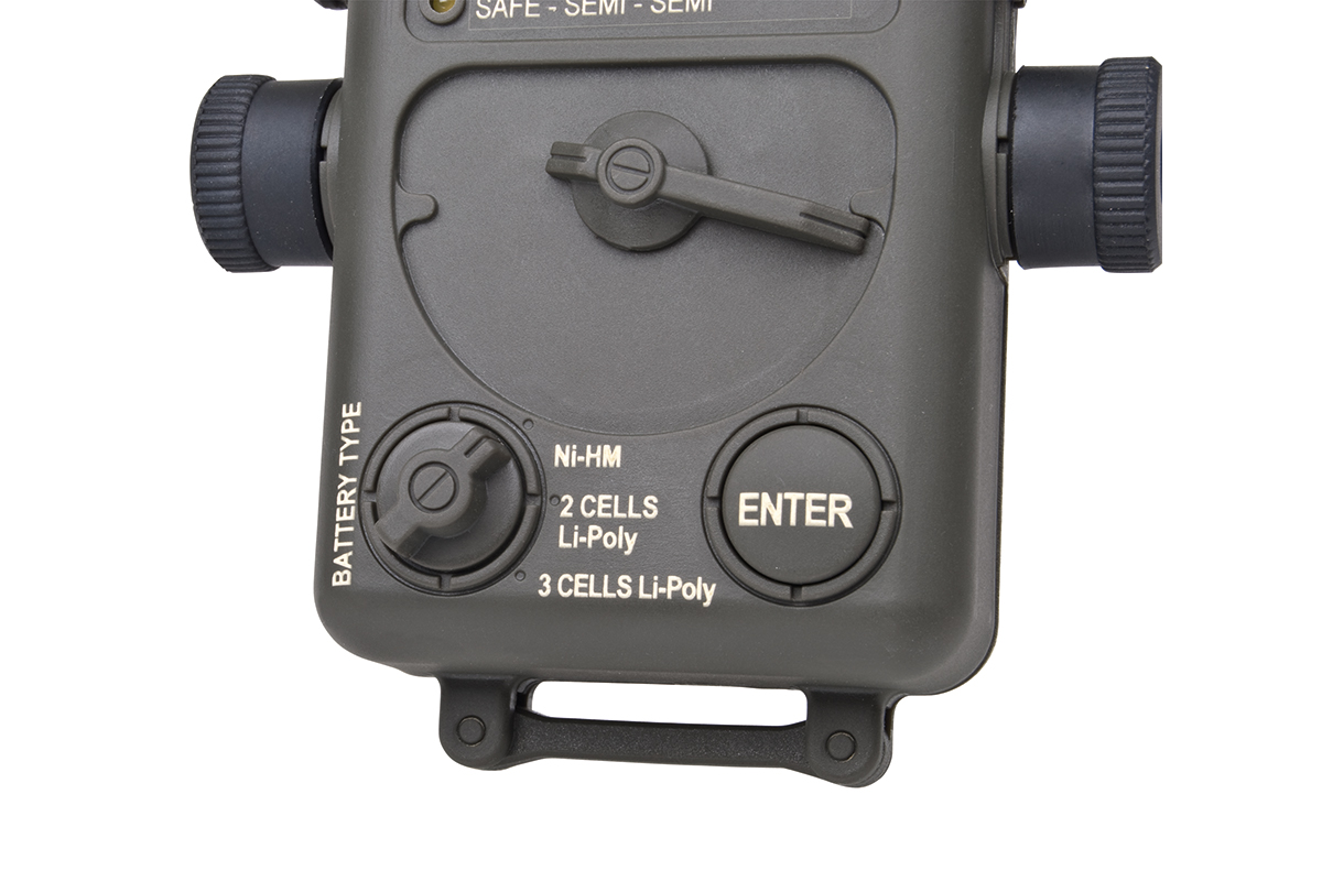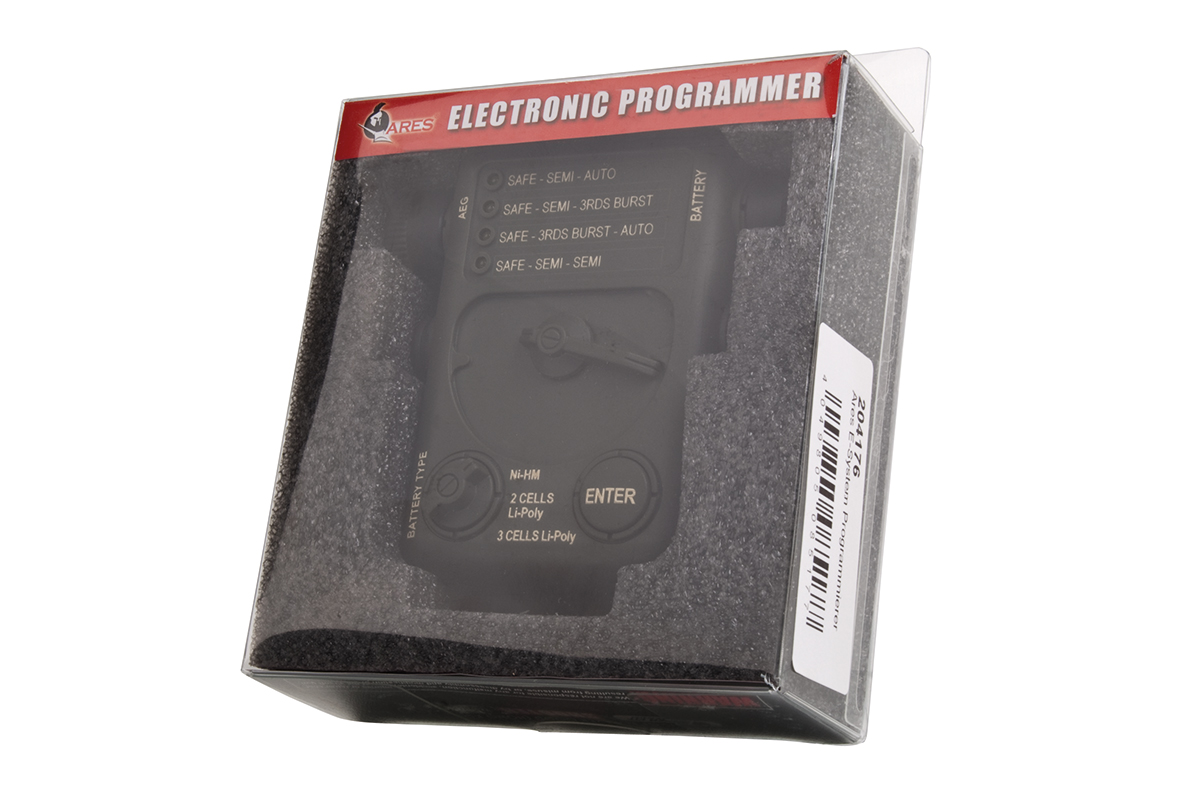 Programmierbox für AEG-Gewehre mit EFCS (Electronic Firing Control System) und GCS (Gearbox Control System). Mit der Box kann die Elektronik der Waffen auf einen bestimmten Akkutyp abgestimmt werden. Dadurch sind z.B. Li-Po Akkus vor Tiefenentladung geschützt.