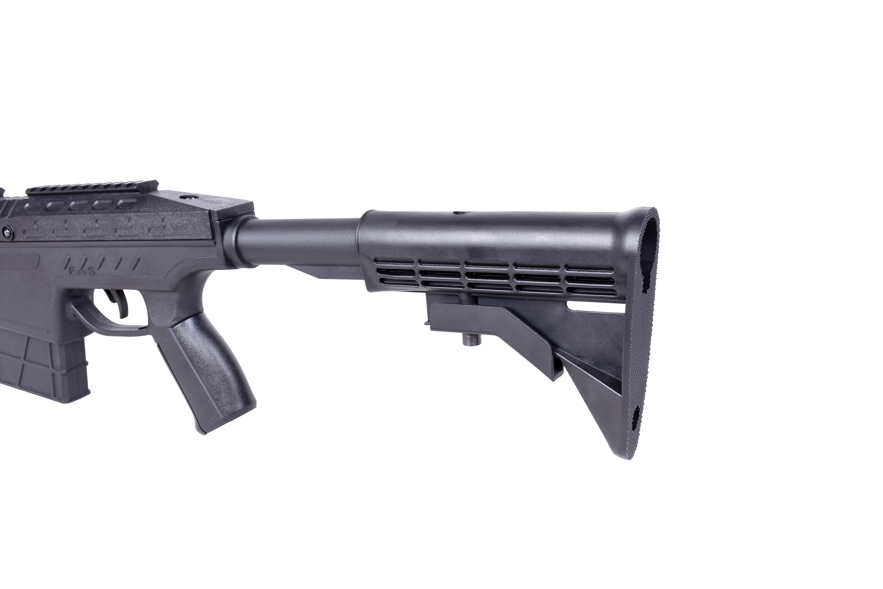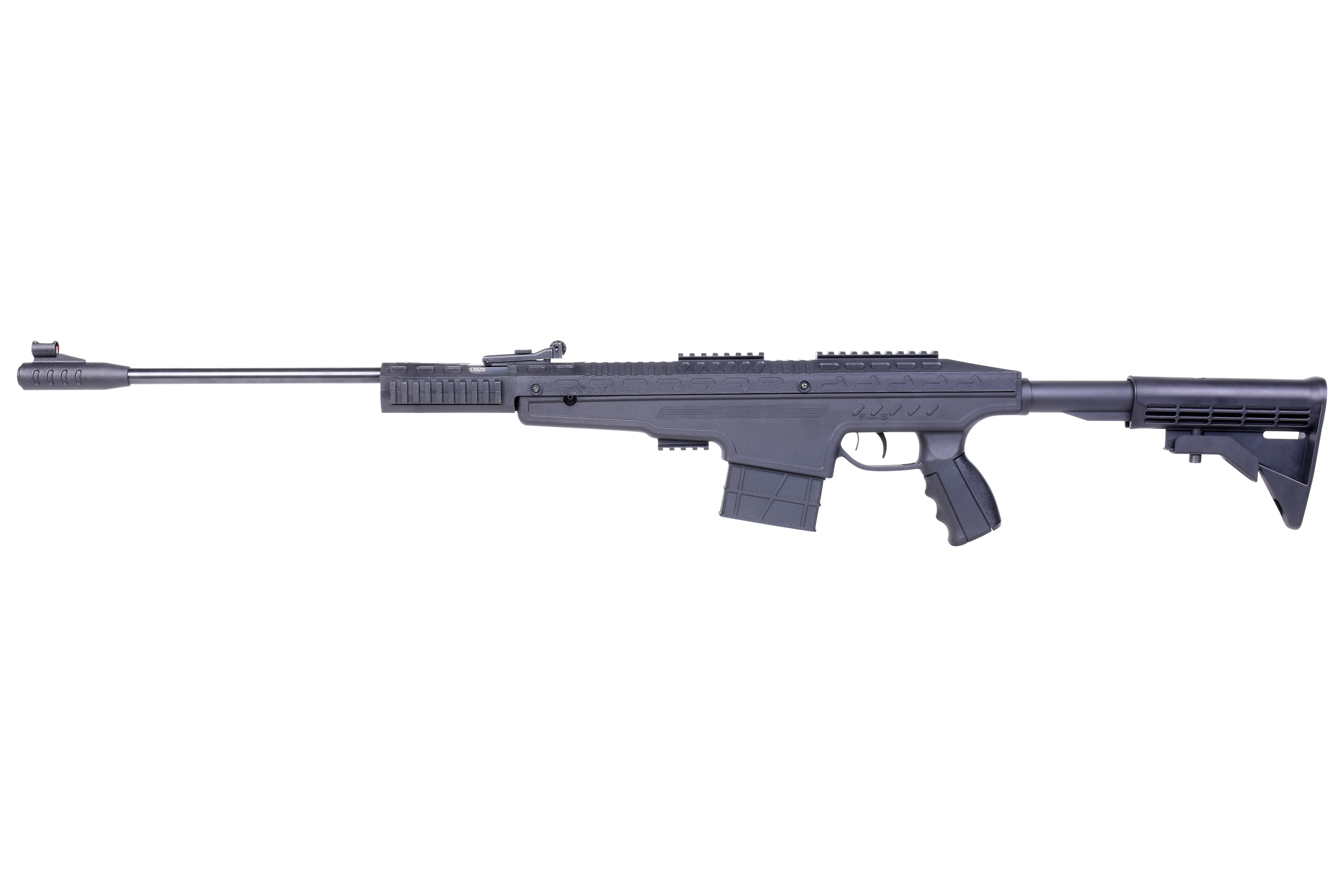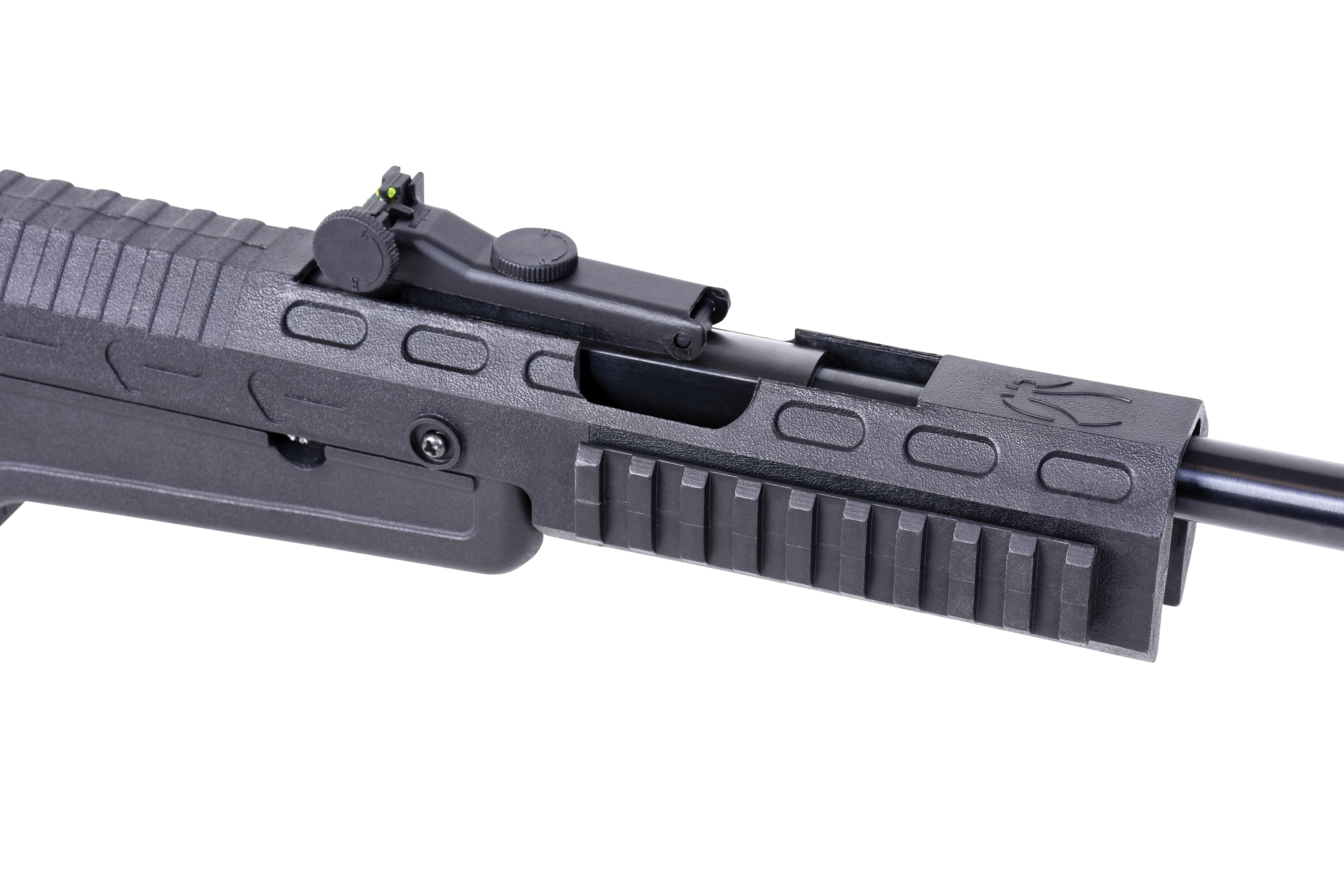 Für zusätzlichen Komfort und festen Halt sorgt der in fünf Stufen verstellbare Teleskop-Schaft im AR-15 Style. Er kann auch nach Belieben durch alle AR-15 Schäfte ausgetauscht werden. Die Fiber Optik mit höhen- und seitenverstellbarer Kimme rundet das Gesamtbild dieses Luftgewehrs ab.