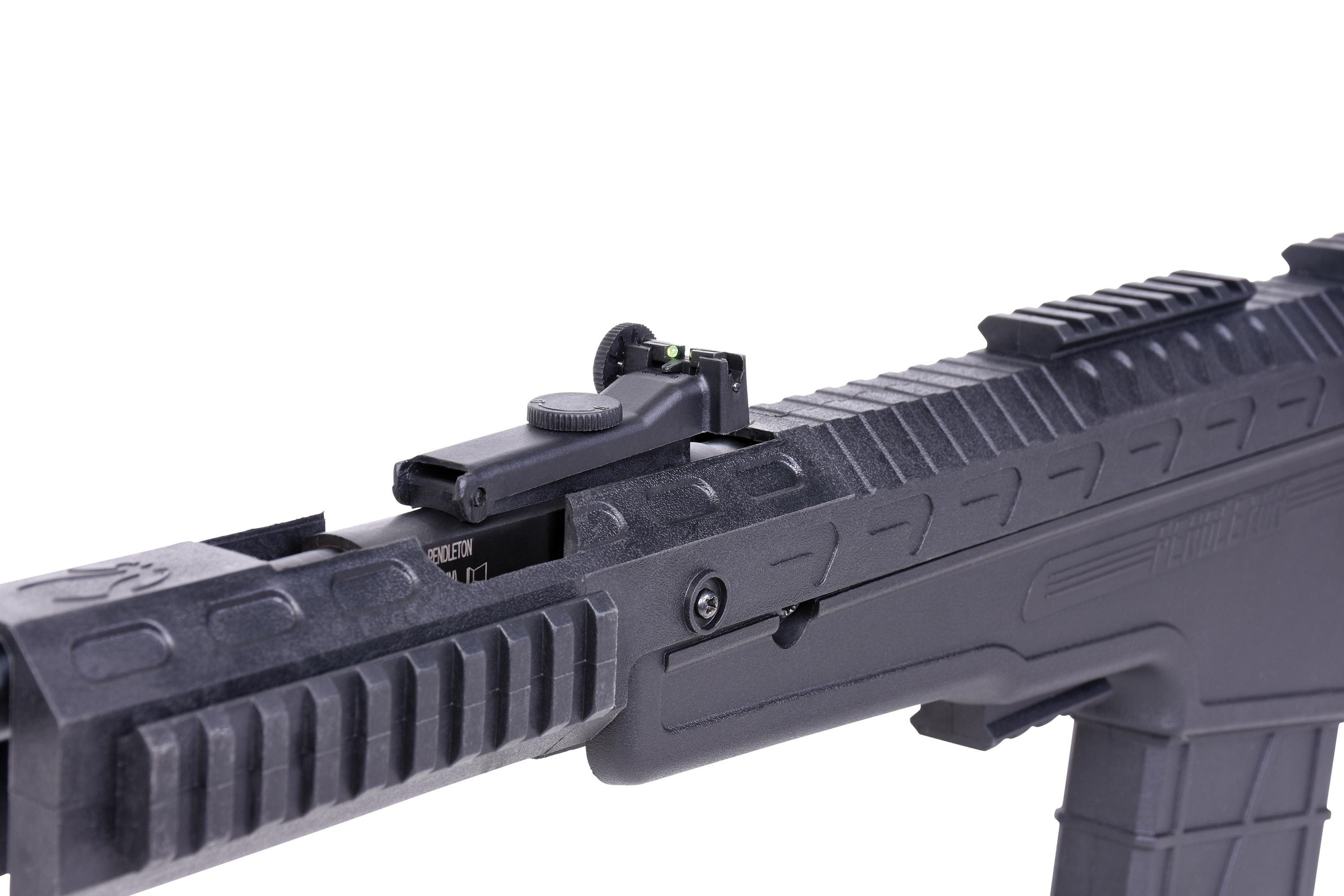 Das wohl außergewöhnlichste an dieser Waffe: Sie verfügt über fünf Picatinny-Schienen. Unter anderem eine 21mm Picatinny-Schiene zur Montage einer Optik, als auch eine Schiene unterhalb des Laufes für ein Zweibein. Die Möglichkeiten für die Anbringung von weiterem taktischen Zubehör sind hier unendlich.