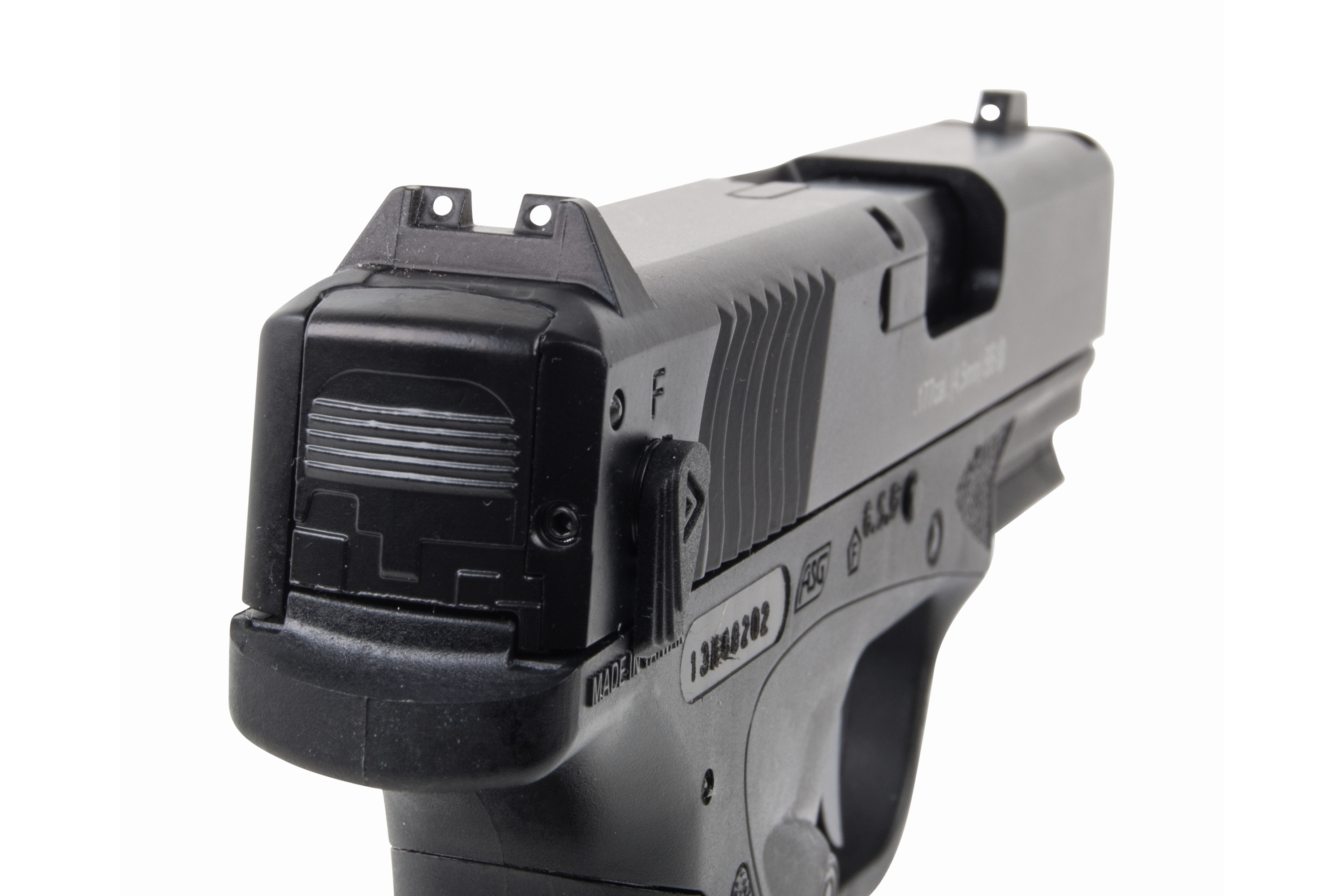 Der hochwertige Nachbau aus dem Hause ASG mit einer Energie von ca. 2,3 Joule wird mit CO2 betrieben. Das Modell verfügt über einen Metall-Schlitten, eine integrierte Railschiene, eine 3-Punkt-Visierung, authentische Markings, eine individuelle Seriennummer und ein Easy-Load-System. Beim Easy-Load-System sorgt eine arretierbare Magazinfeder für einen unkomplizierten Ladevorgang.