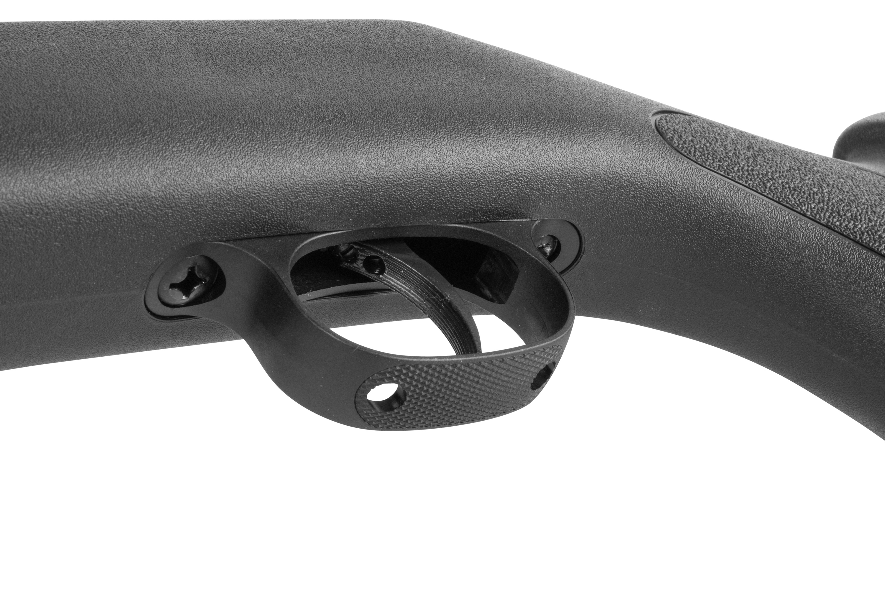 Der robuste, wetterfeste Kunststoffschaft im Panther-Design verfügt über eine beidseitige Schaftbacke sowie griffige Fischhautflächen am Griff- und Vorderschaftbereich. Dadurch eignet sich das Gewehr für Rechts- wie Linksschützen und bietet optimalen Komfort bei sicherem Handling.