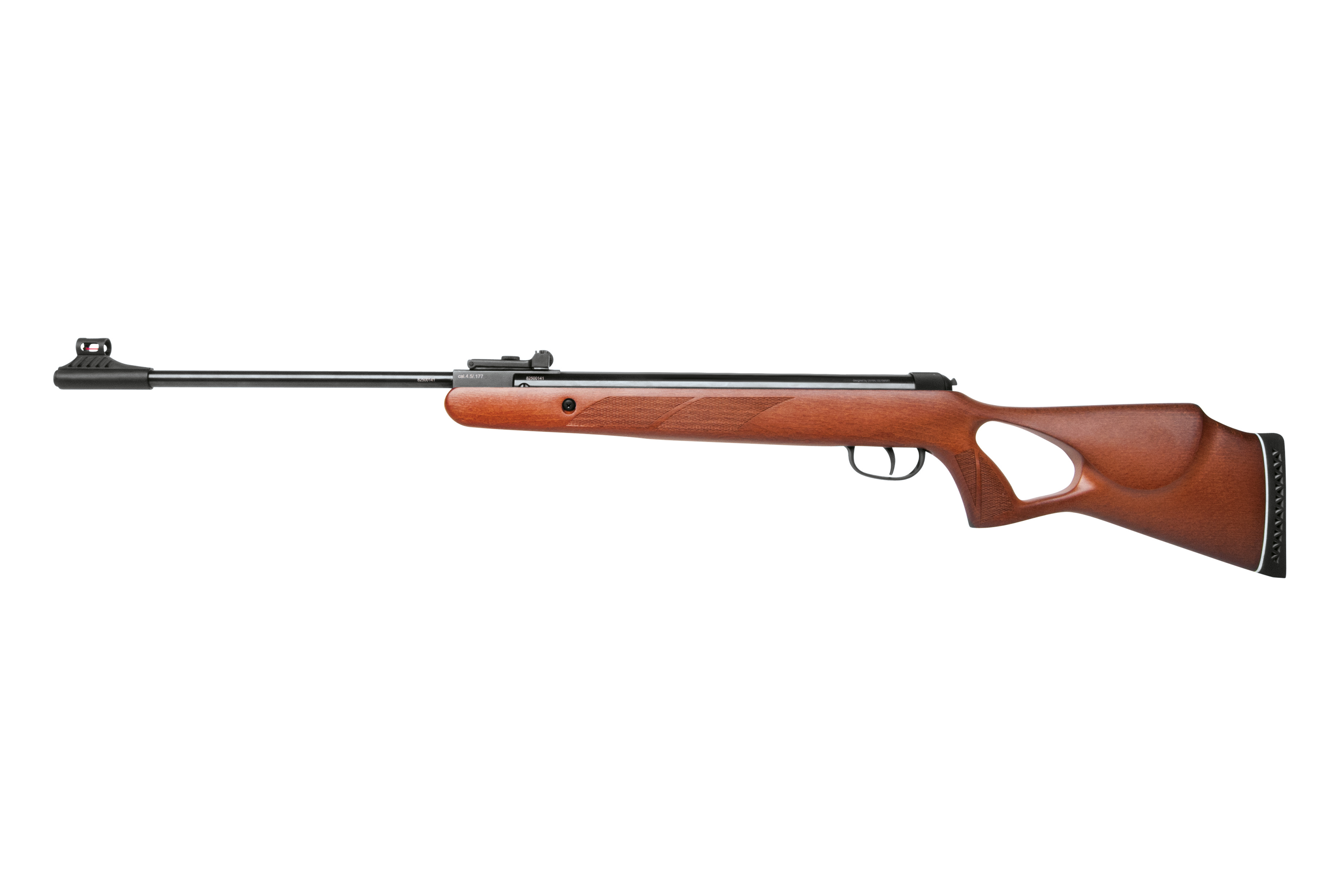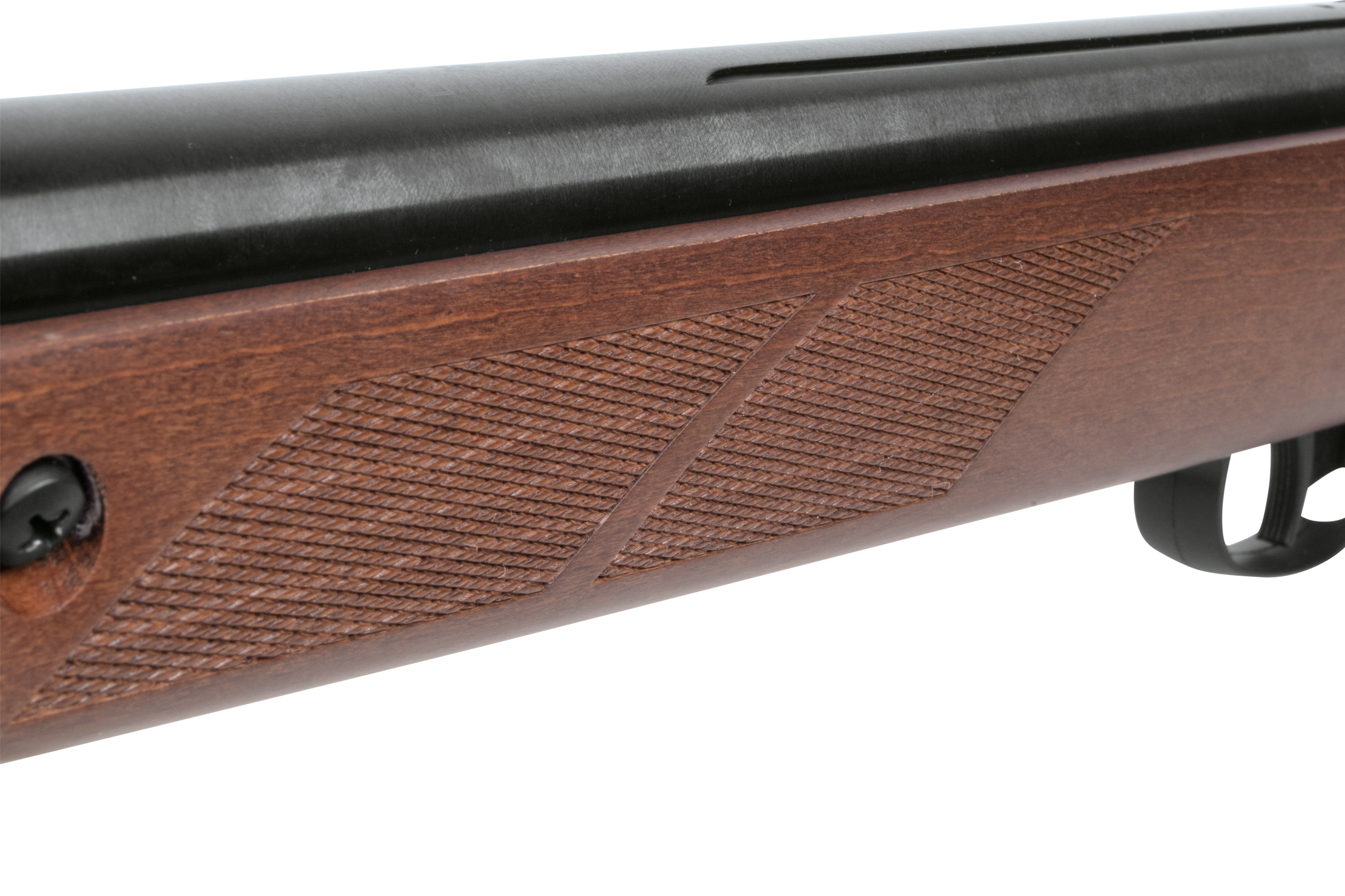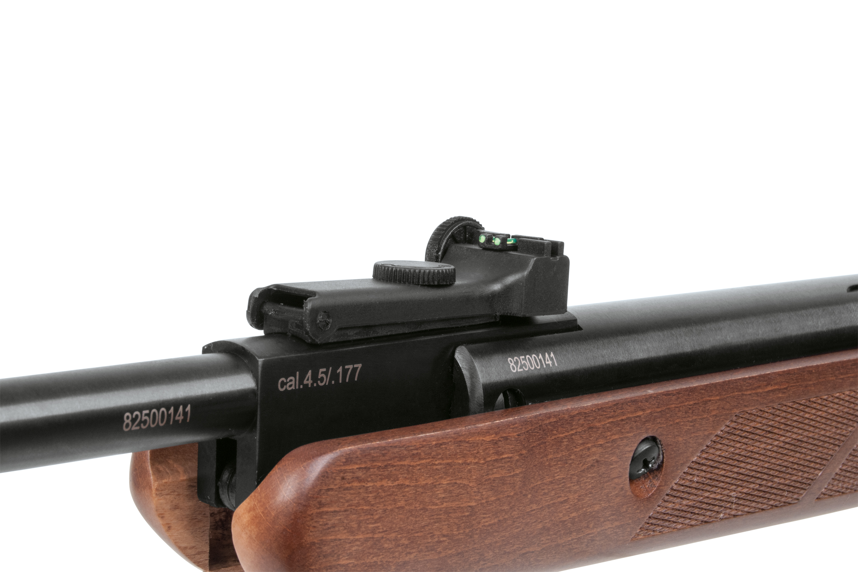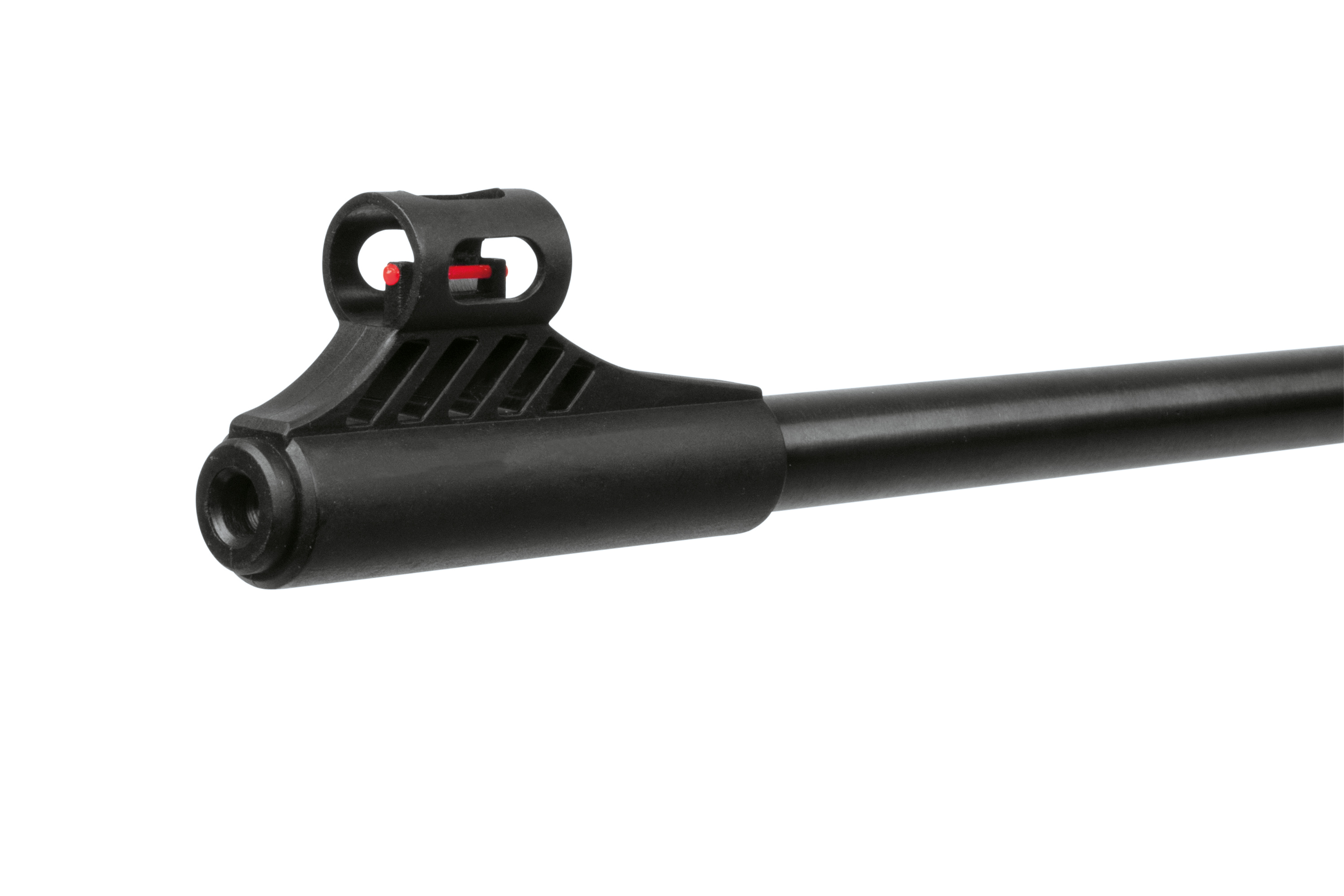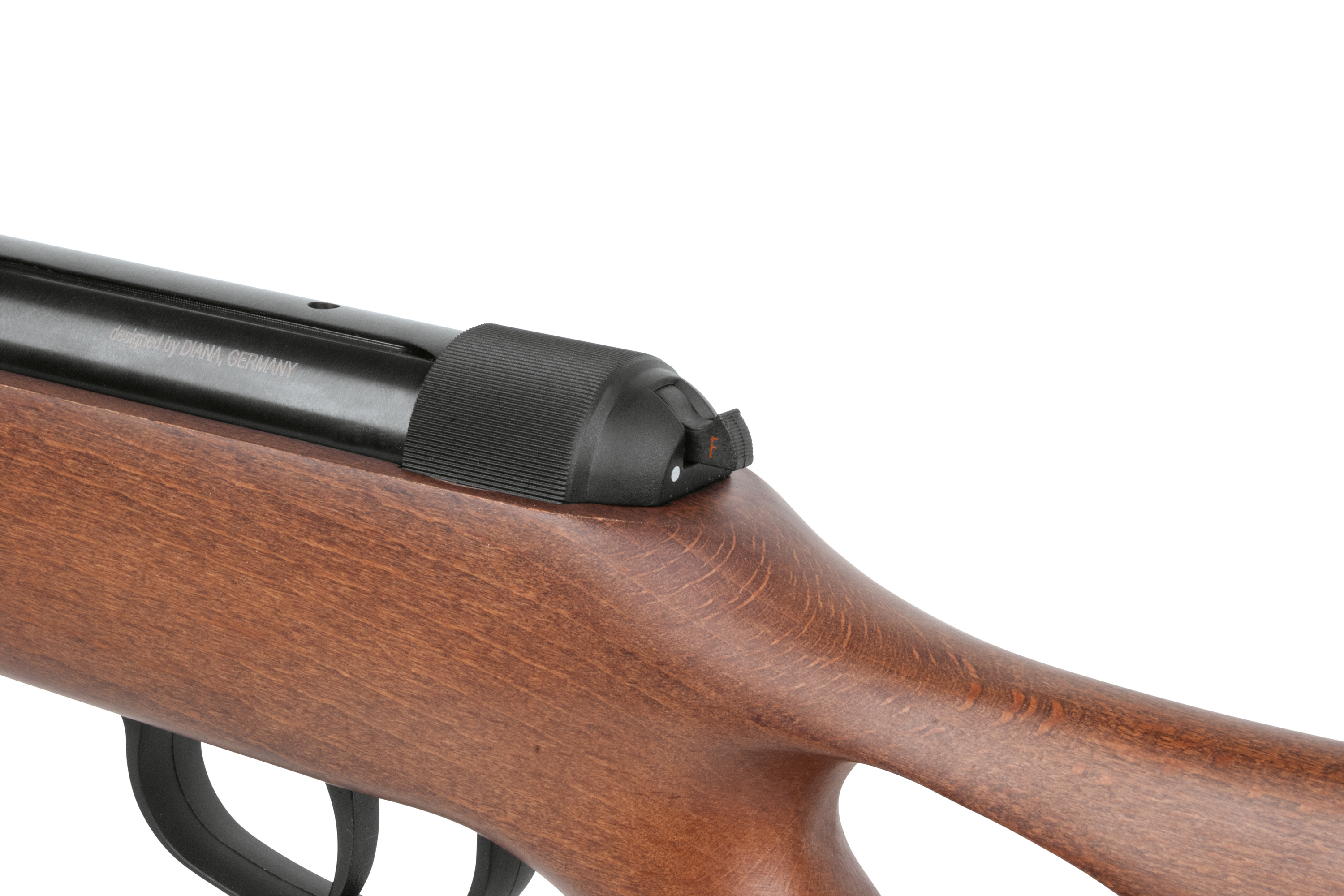 Das Diana-Luftgewehr in modernem Design mit ergonomischen Lochschaft verfügt über eine gummierte Schaftkappe und eine gefräste 11mm Prismenschiene.
