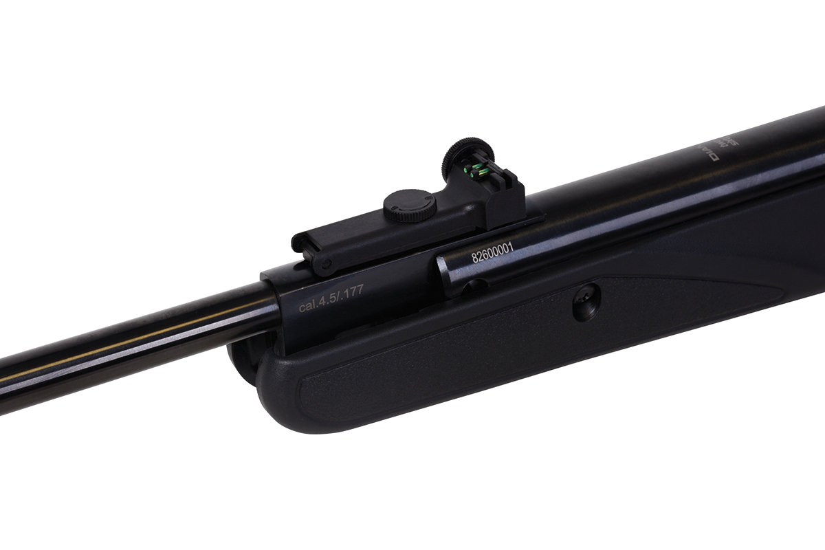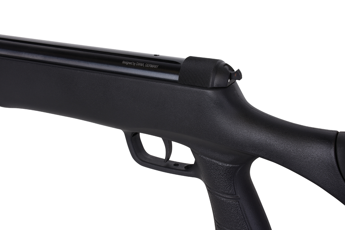 Das DIANA-Luftgewehr in modernem Design mit ergonomischem Kunststoff-Lochschaft verfügt über eine verstellbare Schaftbacke, eine gummierte Schaftkappe und eine gefräste Prismenschiene.