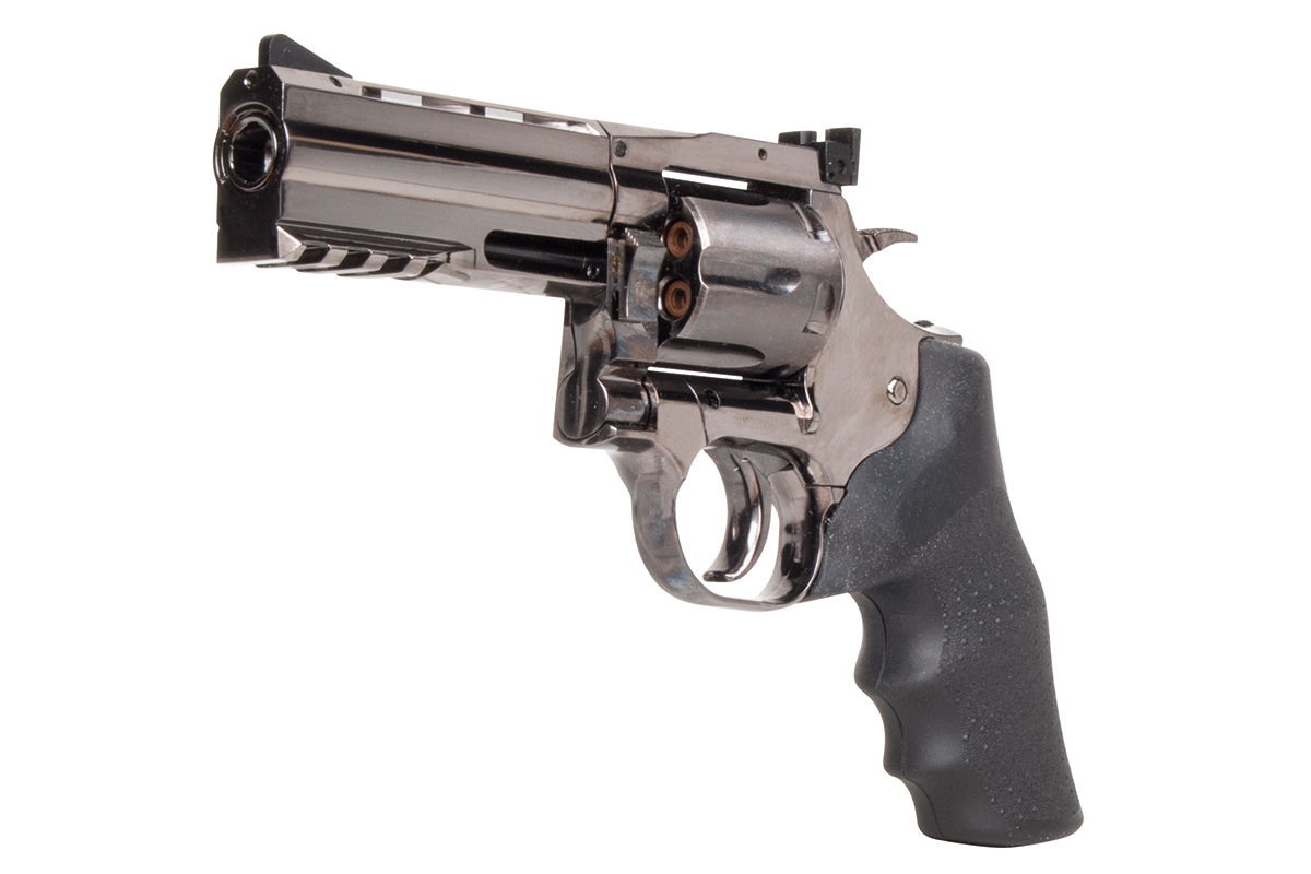 Der hochwertig verarbeitete Nachbau aus dem Hause ASG mit einer Energie von ca. 1,8 Joule wird mit CO2 betrieben. Der Revolver aus Vollmetall verfügt über eine individuelle Seriennummer, einen Double Action Abzug, eine verstellbare Visierung und ein gummiertes Griffstück im Hogue Design.