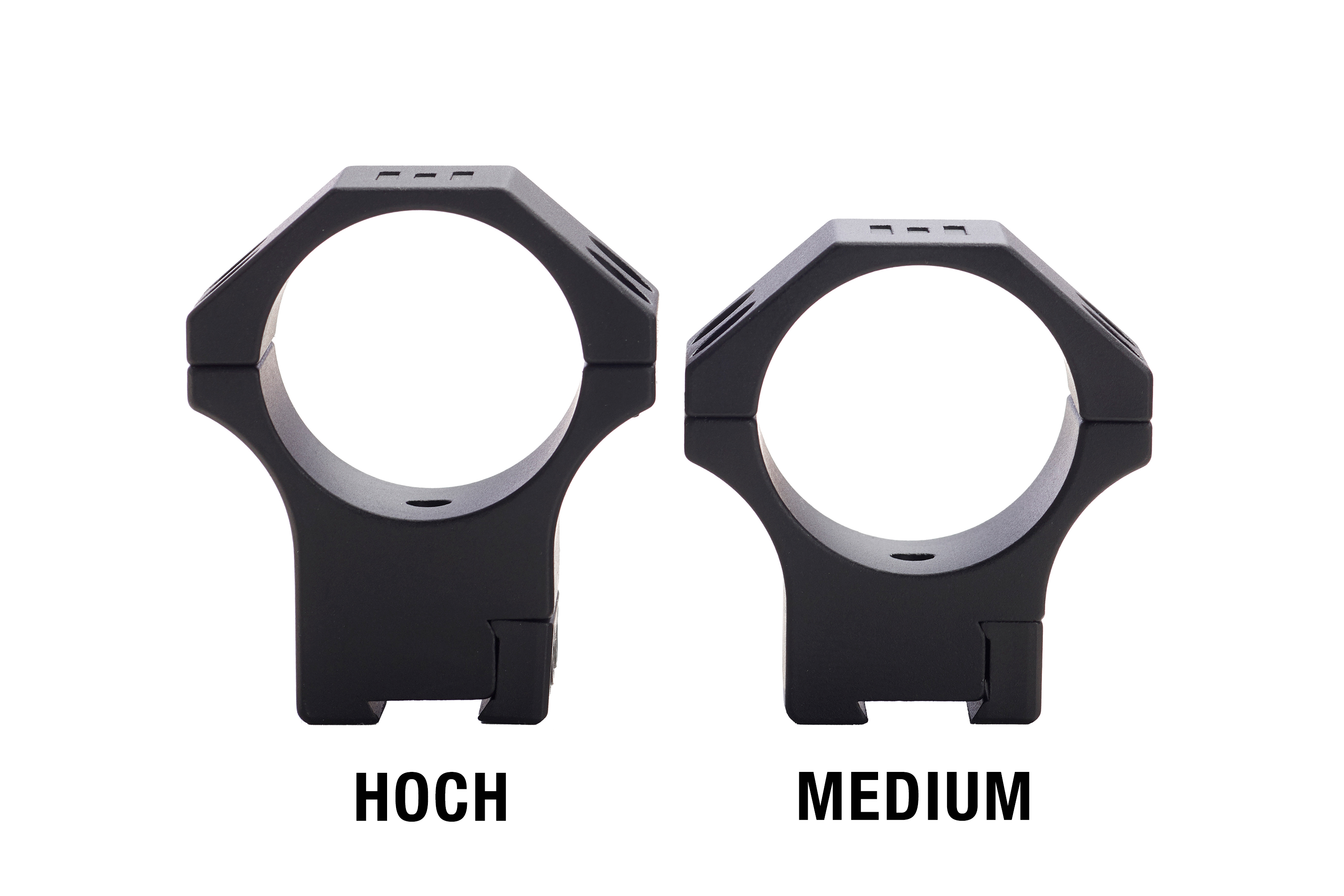 Die XT-Montageringe sind in verschiedenen Bauhöhen sowohl für Picatinny- (22 mm) als auch Prismenschienen (11 mm) verfügbar und sowohl für 1"- als auch 30mm-Mittelrohre erhältlich.