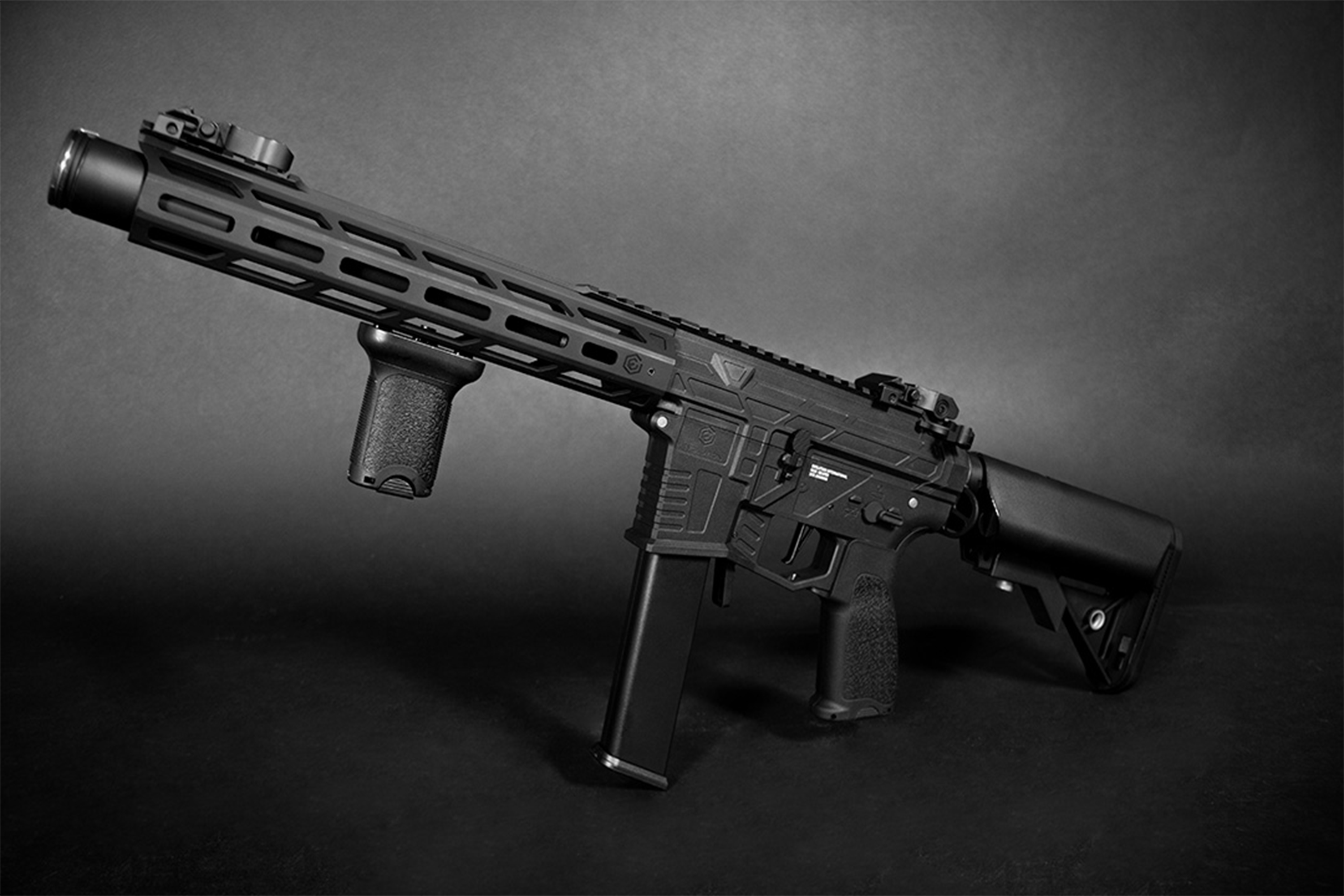 - Im bewährten M4 bzw. M16 Style mit Griffstück im Bravo-Design aus robustem Polymer