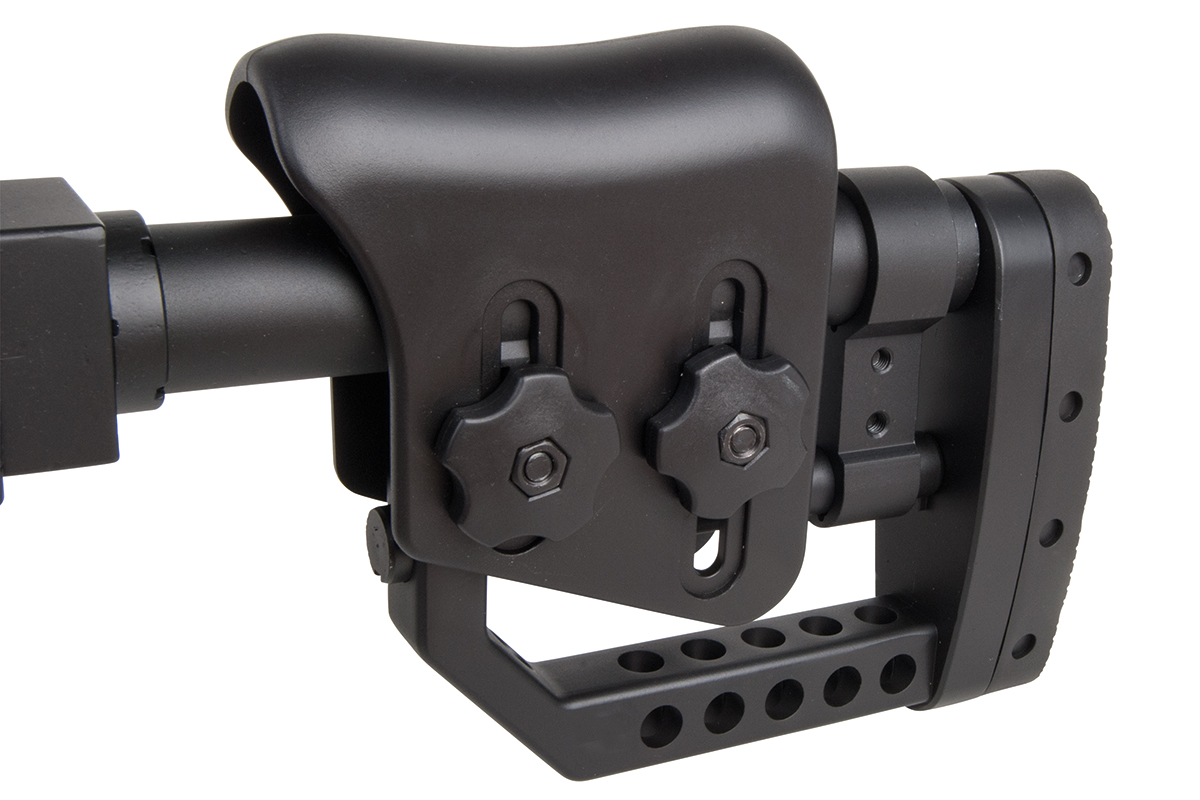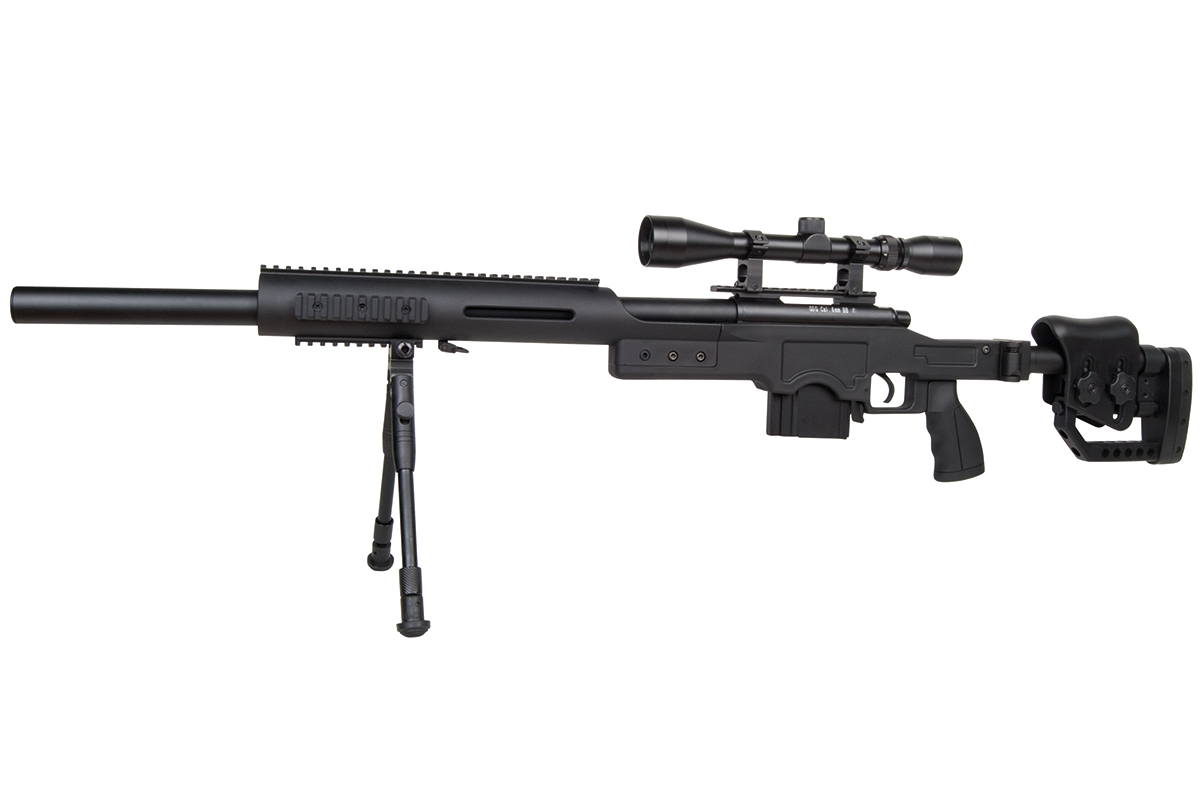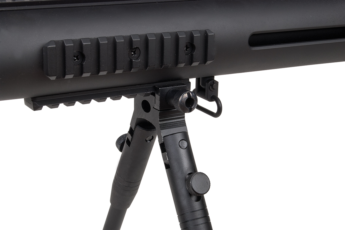 Das hochwertige Sniper-Gewehr aus dem Hause WELL mit einer Energie von ca. 1,7 Joule verfügt über eine einklappbare Schulterstütze, ein integriertes Zweibein, einen Tragegurt, einen Speedloader, eine höhenverstellbare Wangenauflage und verschiedene Railschienen. Gefertigt wird das Mododell aus Metall (Hauptgehäuse, Lauf & R.I.S.-System) sowie aus Kunststoff. Das bewährte Spin-Up System sorgt für Präzision auf höchstem Niveau. Die Lieferung erfolgt inklusive passendem Zielfernrohr.