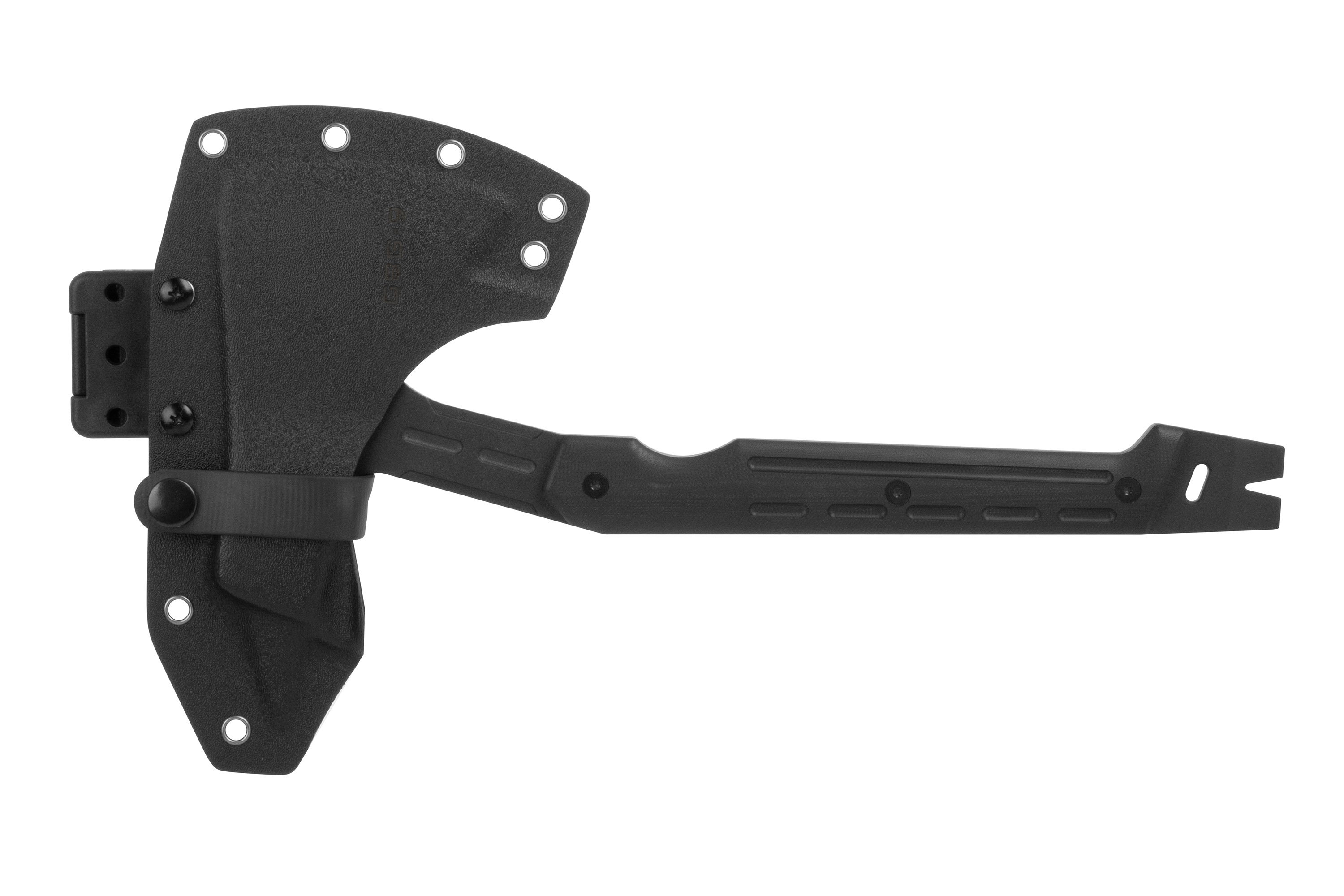 Der Axtrücken ist modular ausgeführt und kann je nach Anforderung mit einem Hammer- oder Pickelaufsatz bestückt werden. Zusätzlich verfügt die EA1 über eine integrierte Prybar-Funktion für Hebel- und Brecharbeiten.