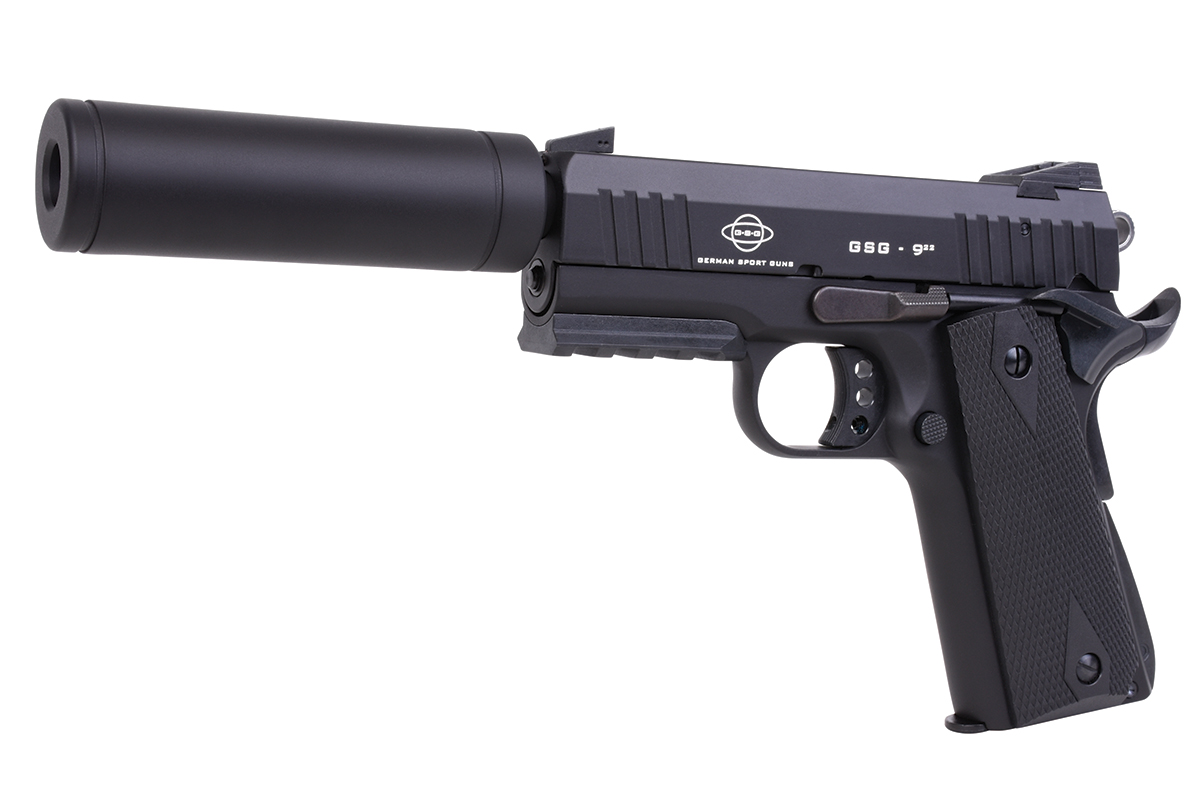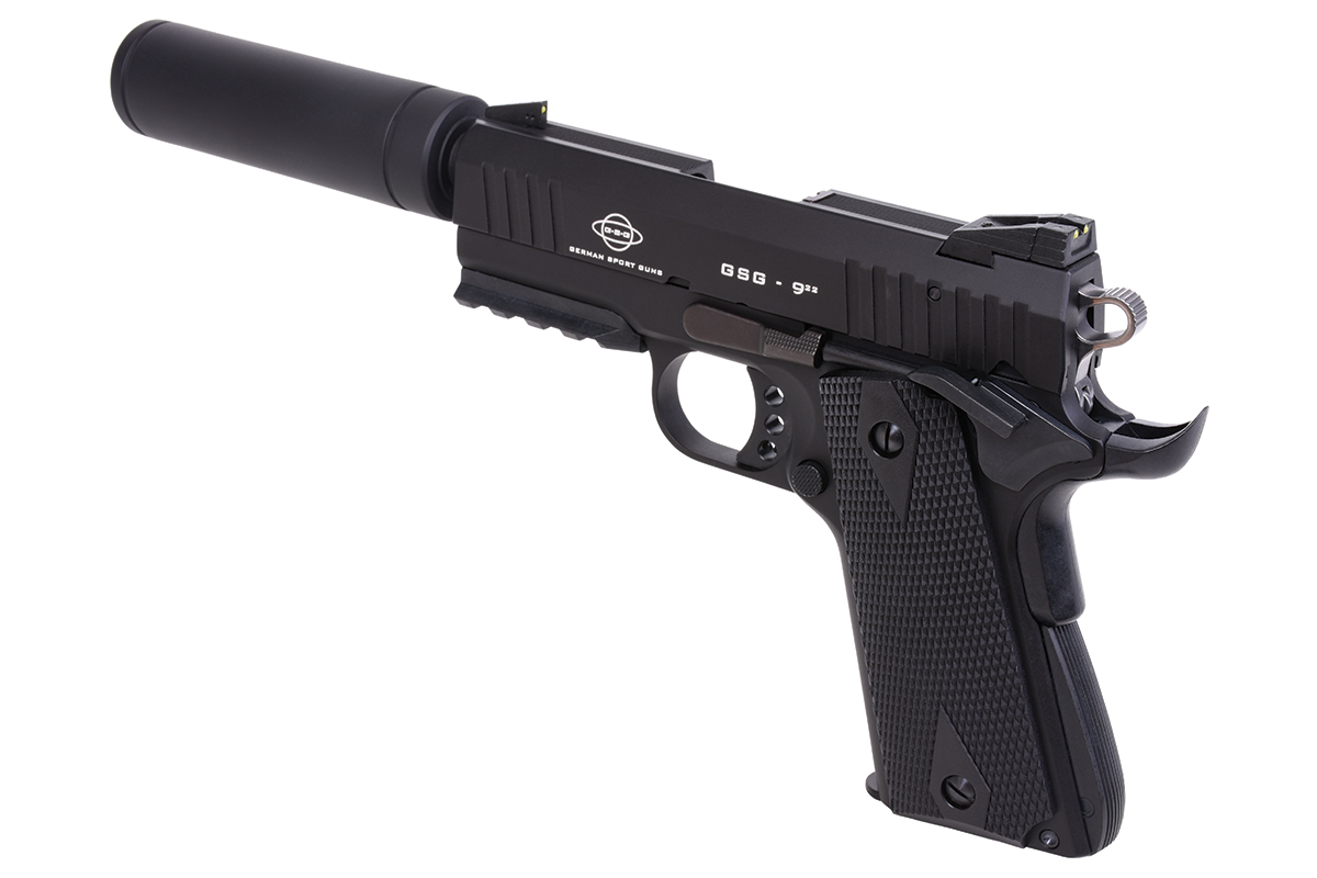 Die GSG-922 Selbstladepistole im Cal. .22 ist eine kompakte Ausführung der beliebten 1911, mit dreizölligem Lauf und einigen Erweiterungen bei der Sicherung.