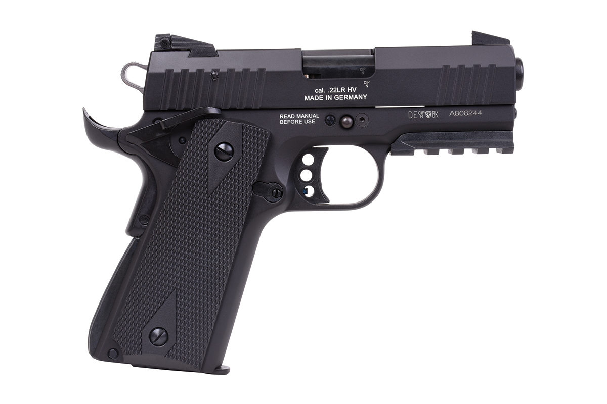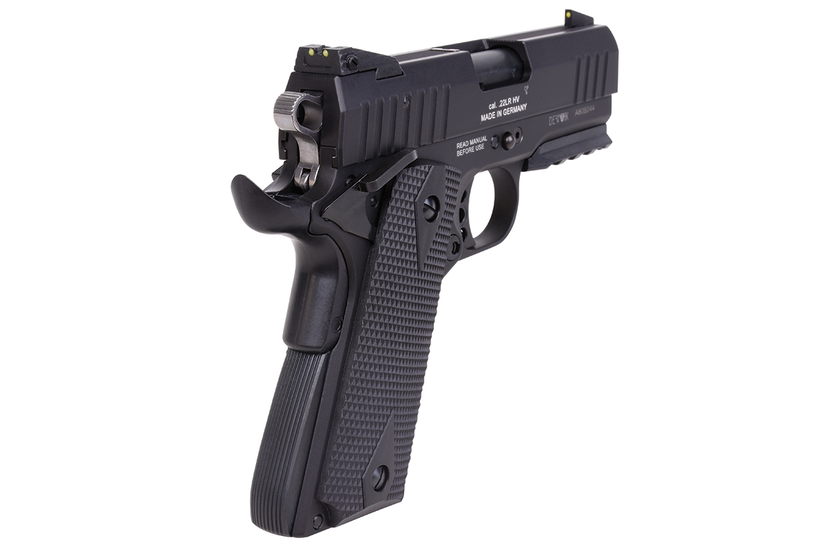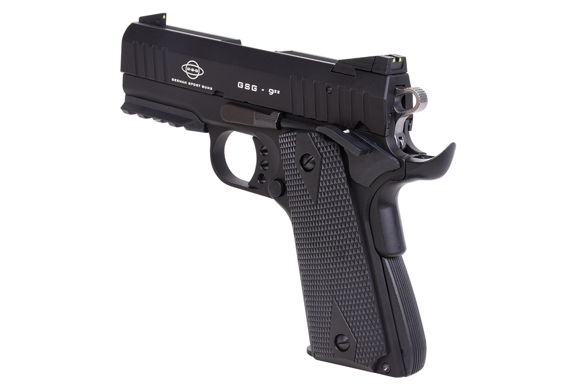 Die GSG-922 Selbstladepistole im Cal. .22 ist eine kompakte Ausführung der beliebten 1911, mit dreizölligem Lauf und einigen Erweiterungen bei der Sicherung.