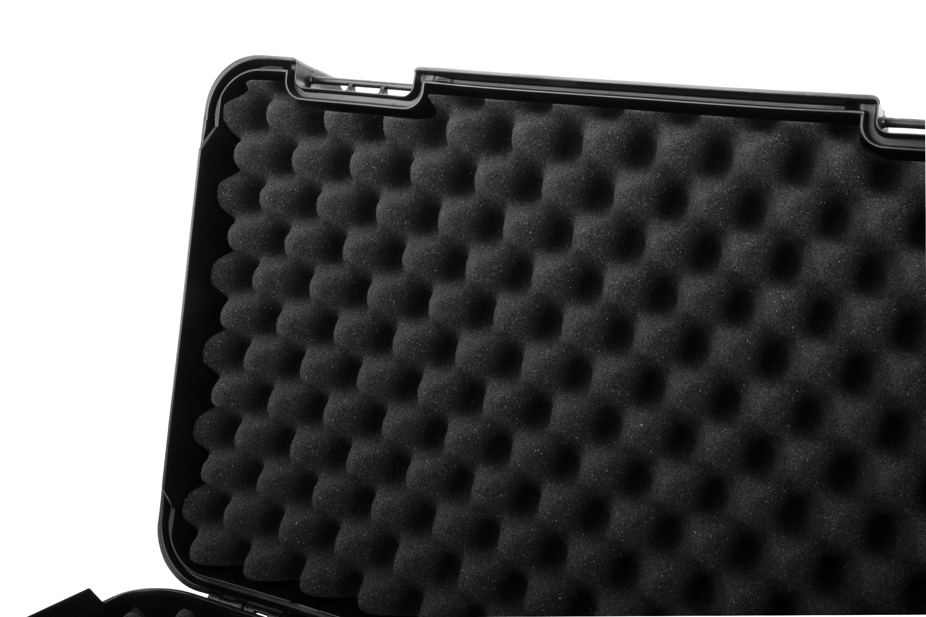 Der Innenraum ist mit vorgeformtem Noppenschaumstoff ausgestattet, der sich der Ausrüstung perfekt anpasst. Dadurch bleibt alles sicher fixiert, ohne zu verrutschen. Durch zwei Kunststoffösen kann er per Vorhängeschloss verschlossen werden kann.