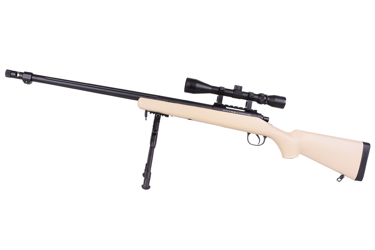 Der sehr gelungene Nachbau mit Federdrucksystem und einer Energie von ca. 1,8 Joule wird inkl. Zielfernrohr geliefert und verfügt über einen Außenlauf im Fluted-Barrel-Design, einen abnehmbaren Flash-Hider (18mm-Rechtsgewinde), ein Metall-Zweibein, Montageschienen und das bewährte Spin-Up System für Präzision auf höchstem Niveau. Schaft und Magazin werden aus hochwertigem Kunststoff gefertigt, Außenlauf, Upper Receiver, Abzugseinheit, Zylinder und Zweibein bestehen aus Metall. Das mitgelieferte federgelagerte Zweibein ist klapp- sowie höhenverstellbar und verfügt über gummierte Füße für einen sicheren Stand. Im Lieferumfang sind außerdem ein Speedloader und ein Tragegurt enthalten.