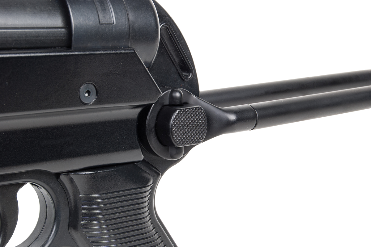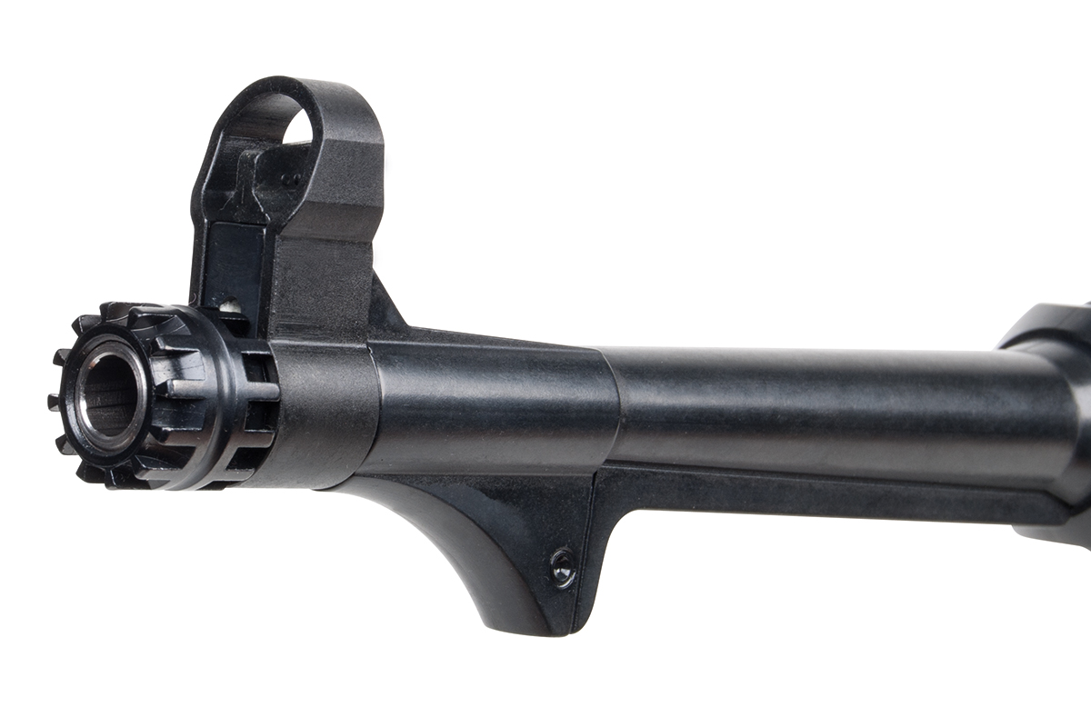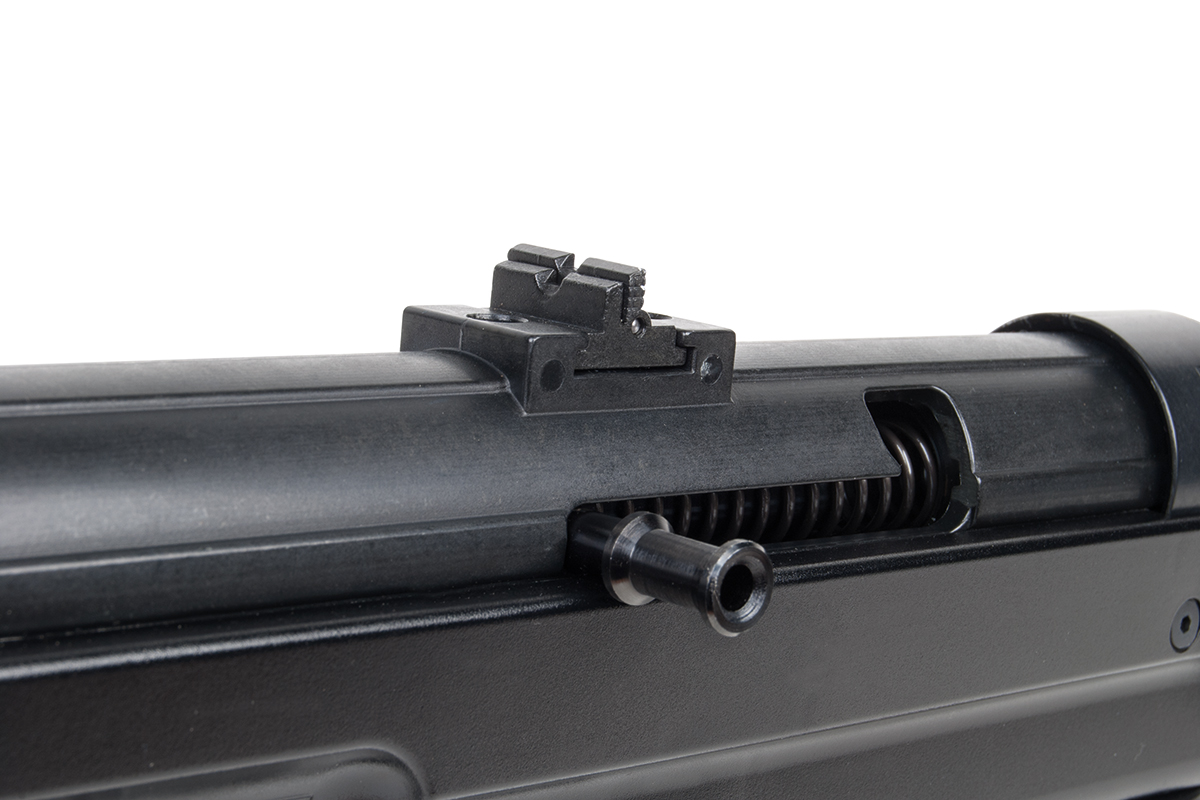 Das Selbstladegewehr mit Masseverschluss im Kaliber 9x19mm verfügt über ein Gehäuse und Griffstück aus Zinkdruckguss, einen Lauf aus kaltgeschmiedetem Spezialstahl, einen gefrästen Stahl-Verschluss, einen aufschließenden Verschluss für bestmögliche Präzision, eine starke Auszieherkralle und einen aktiver Ausstoßer sowie eine Klappkimme. Die Lieferung erfolgt inkl. fünf Wechsel-Korne.