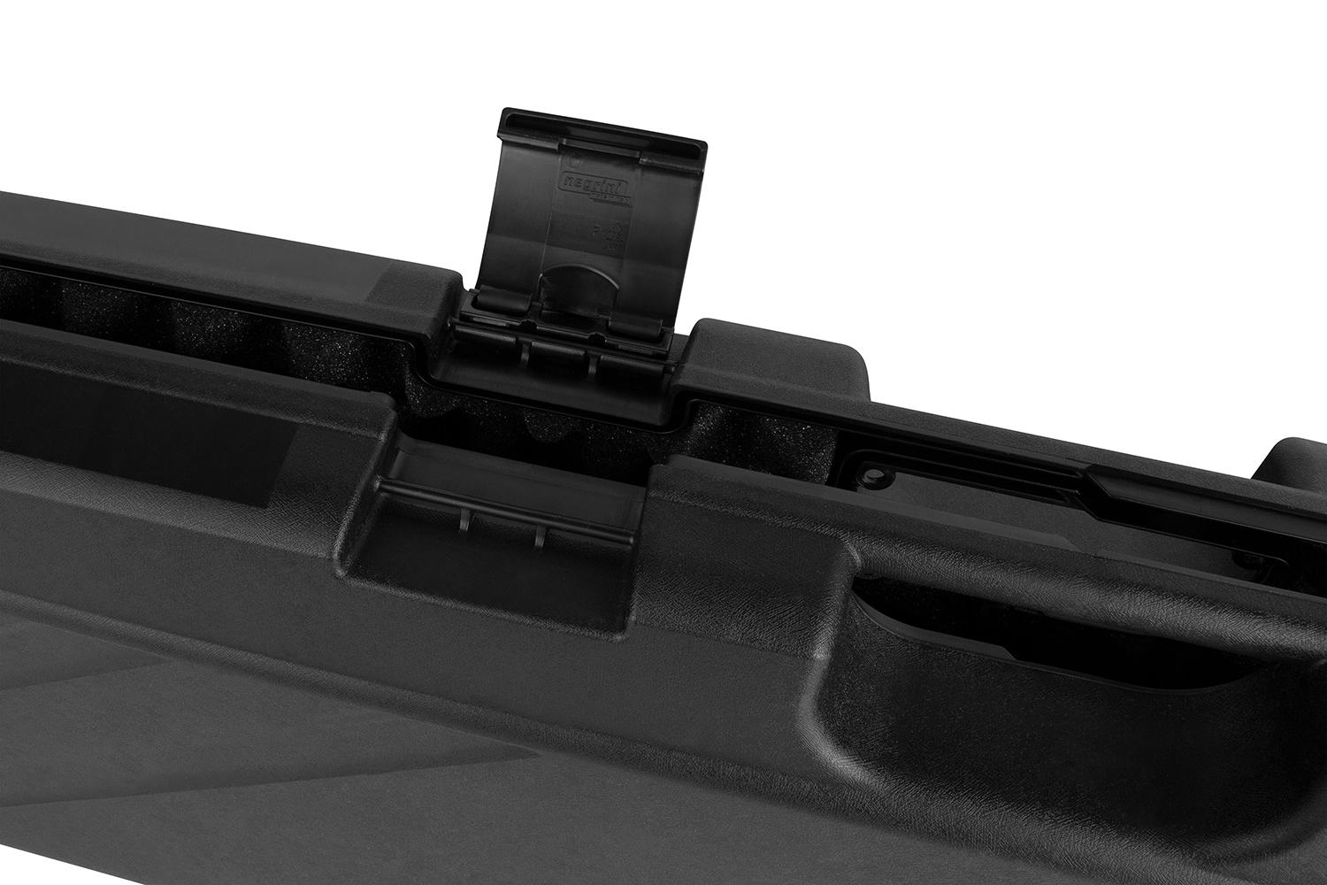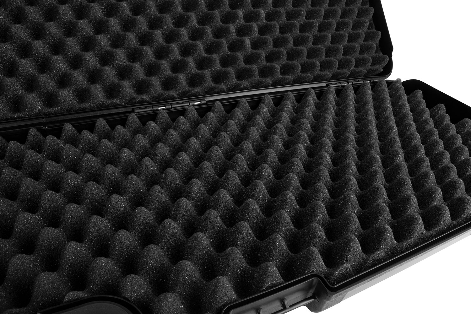 Der robuste Koffer aus einem speziellen, sehr widerstandsfähigen Polypropylen ist für Gewehre und mehrere Kurzwaffen geeignet und mit 4 Push-and-Pull-Verschlüssen versehen. Er verfügt über eine hochwertige Noppenschaumeinlage für eine optimale Kompression.