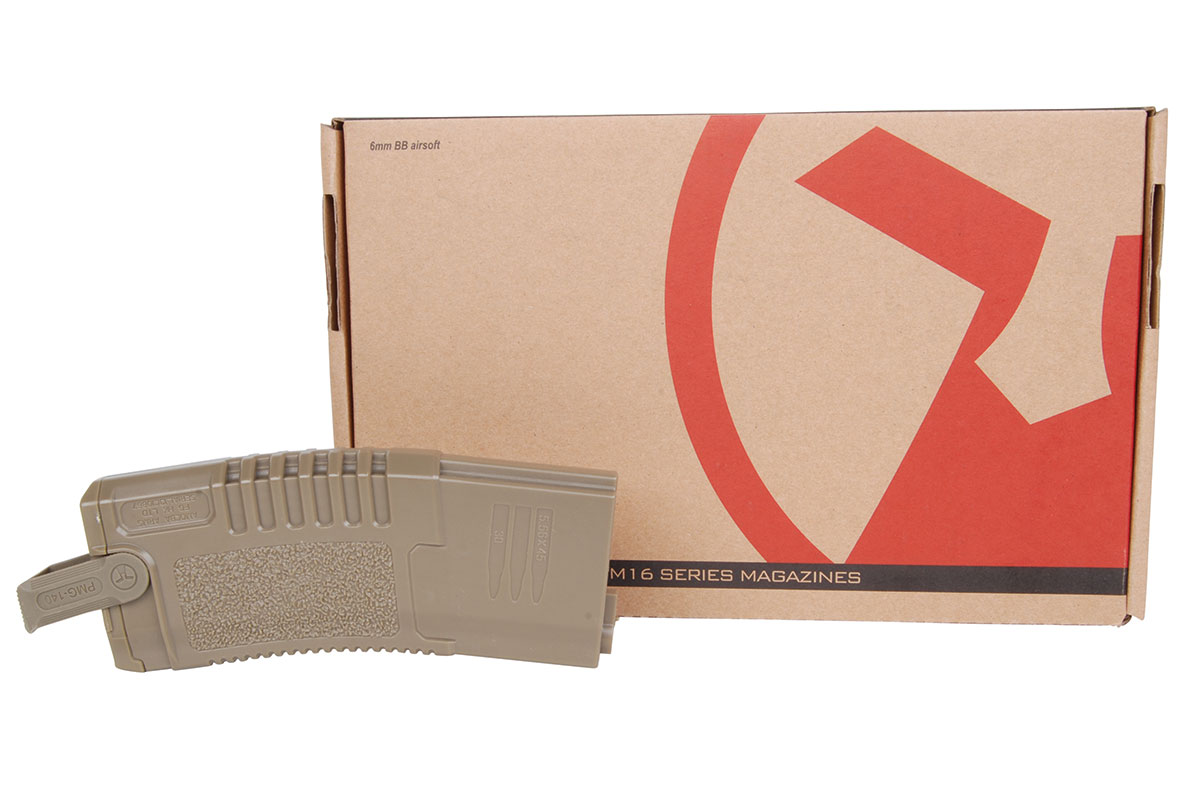 10er Pack Mid Cap Magazine mit je 140 Schuss in der Farbe Dark Earth von ARES, passend für die Amoeba-Modelle und einige M4-Varianten.