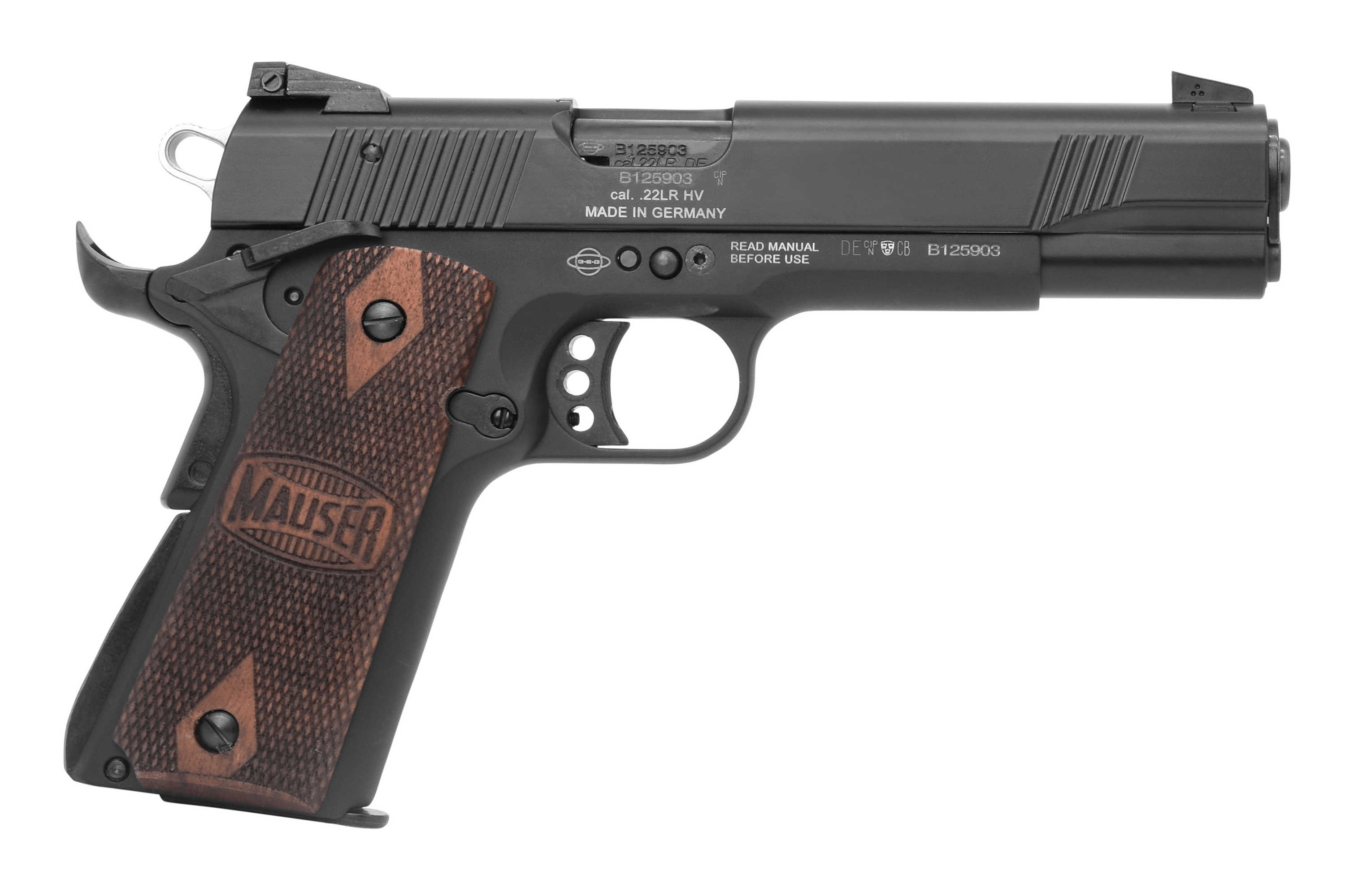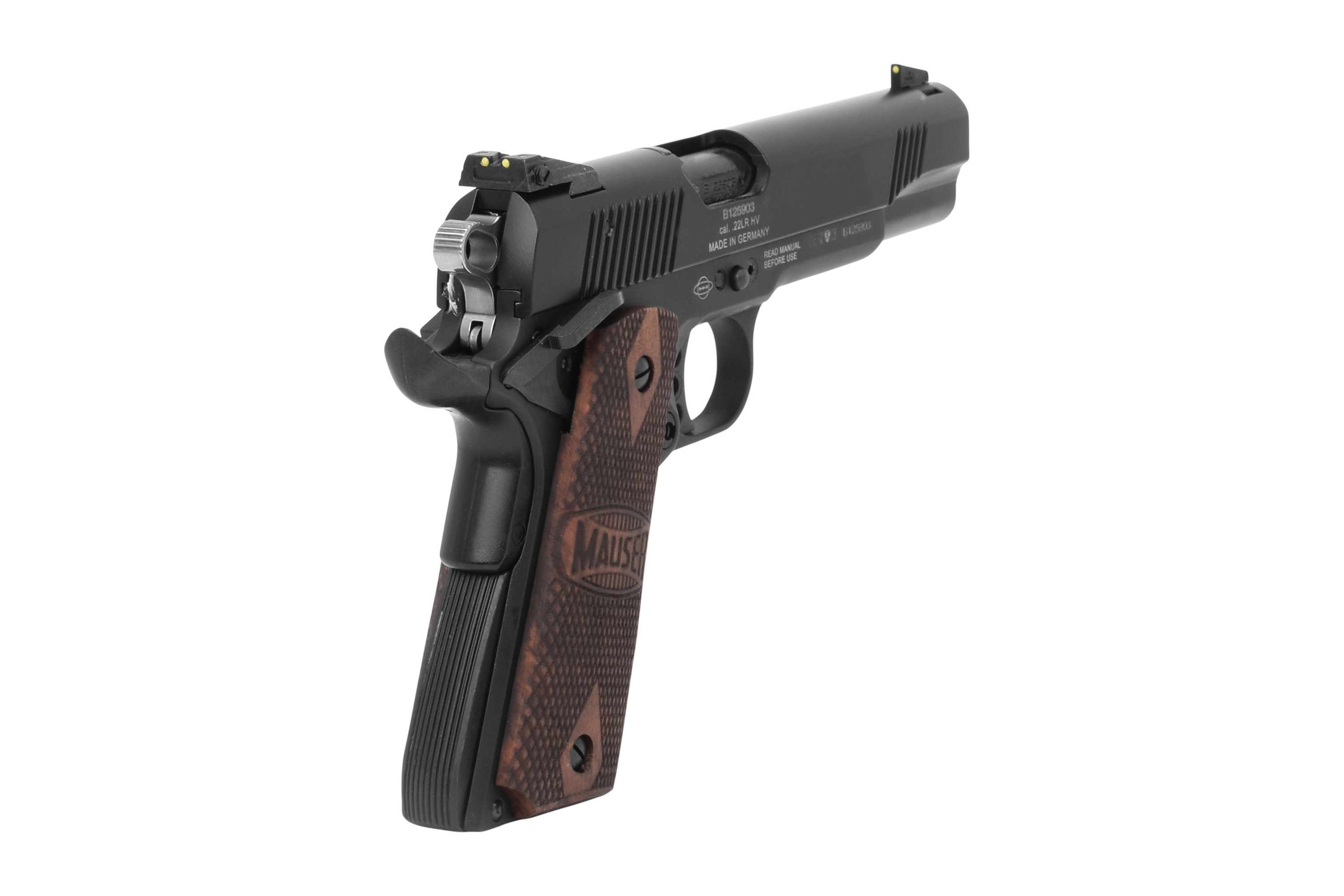 Die Mauser 1911 ist eine Full-Size Single-Action Selbstladepistole im Design der Colt® 1911, entwickelt vom legendären Waffenkonstrukteur John M. Browning. Bei der Konstruktion dieser 1911 im Kaliber .22 war es das Ziel, möglichst viele Teile im Originalmaß zu übernehmen. Somit sind nahezu 80% aller Teile der Mauser 1911 austauschbar mit Teilen von der originalen Colt® 1911 Pistole - ganz nach dem Motto  „Inch made in Germany“.