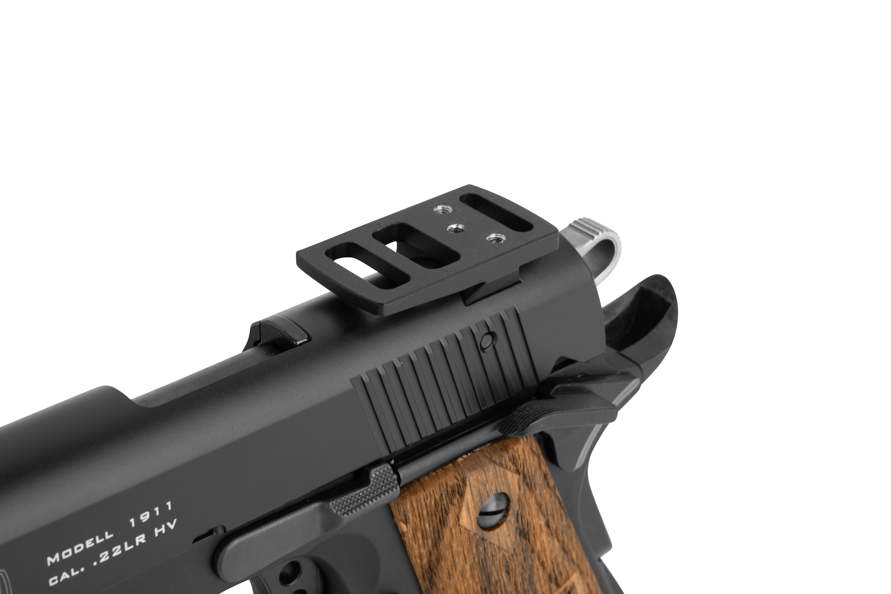 Mit der Adapterplatte 1911 von MAUSER kann jedes geeignete Red Dot (mit einem Shield RMSc Footprint) auf den 1911 Kleinkaliberwaffen von Mauser, GSG und Sig Sauer befestigt werden.