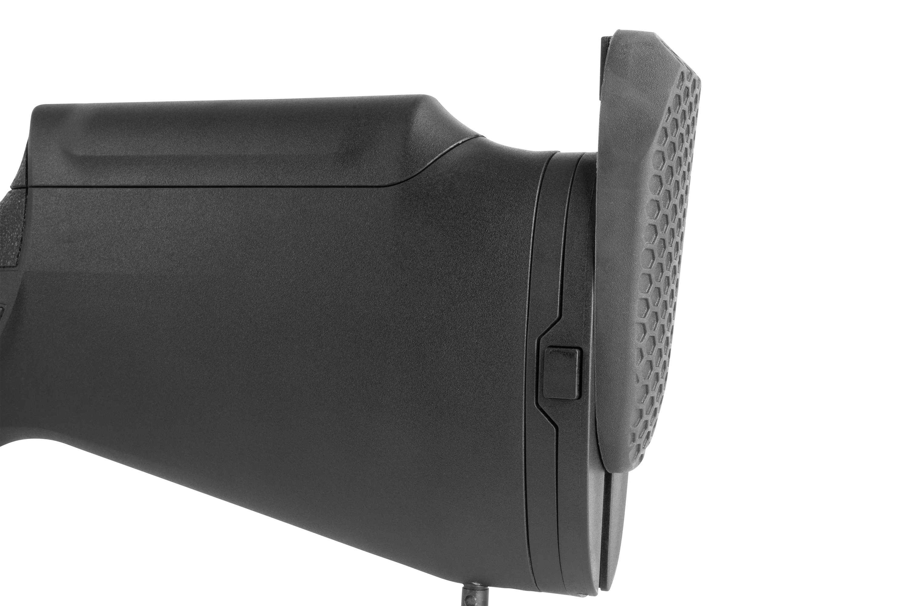 - Gummierte, vertikal einstllbare Schaftkappe und Wangenauflage