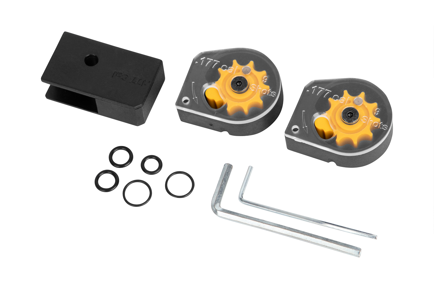 Das seitliche Spannsystem ermöglicht ein komfortables Nachladen. Die Pistole kann wahlweise mit Magazin oder als Einzellader genutzt werden. Eine Fiberoptik-Visierung unterstützt die Zielerfassung, während eine integrierte Schiene die Montage von Zubehör erlaubt.