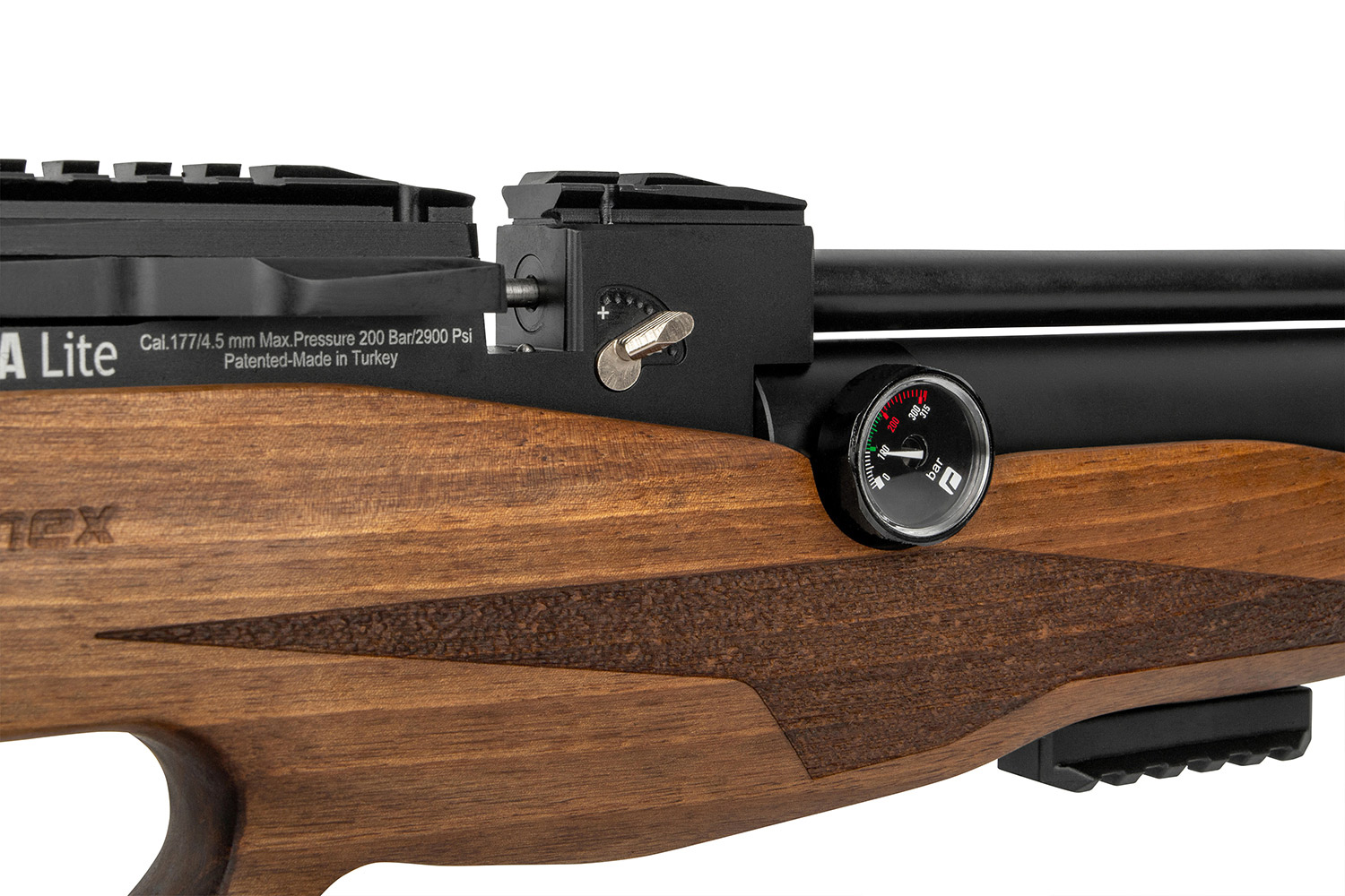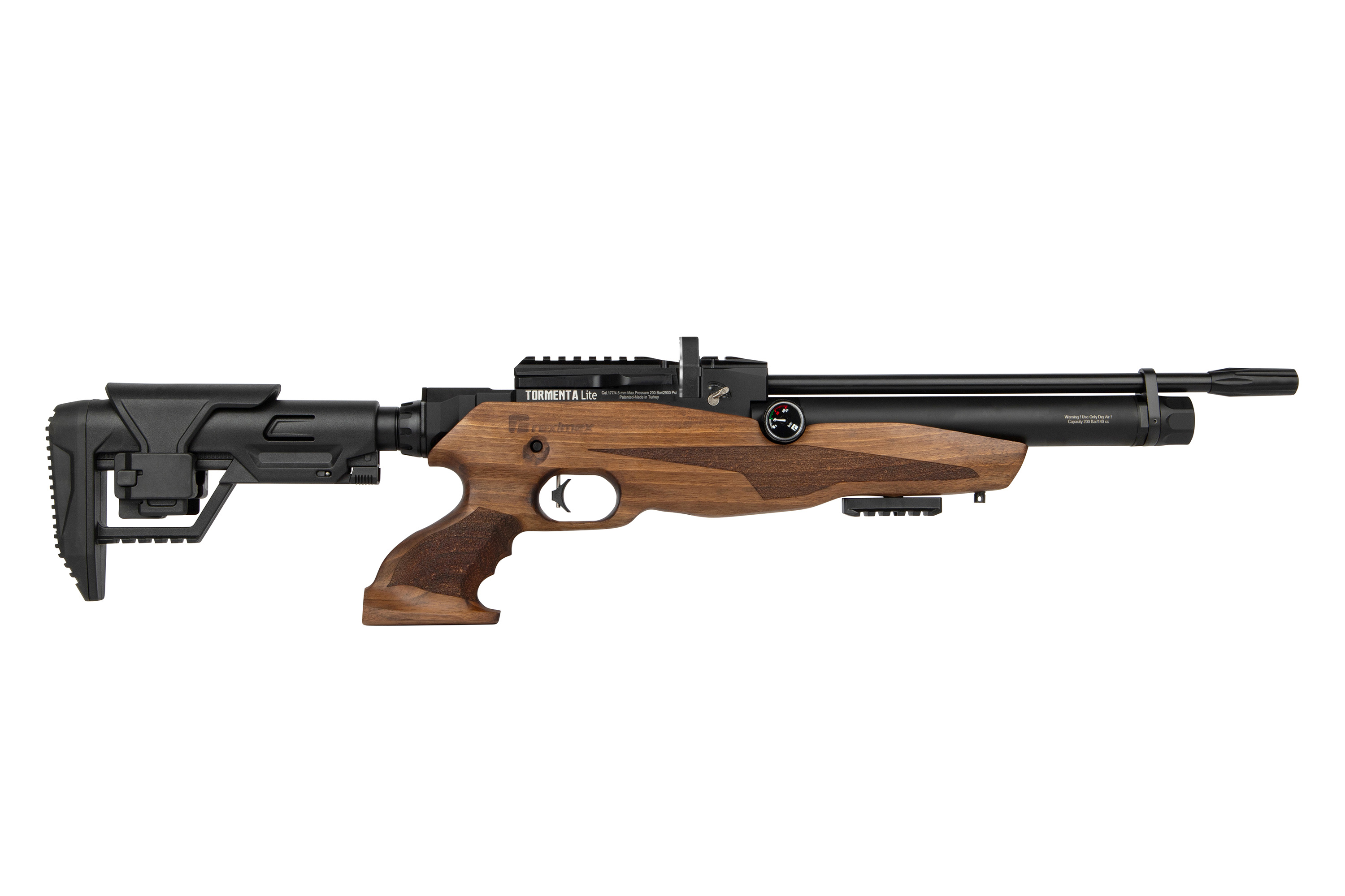 Das Reximex Tormenta W Lite Luftgewehr ist ein leichtes, kompaktes, aber dennoch leistungsstarkes und voll ausgestattetes PCP-Gewehr mit Walnussholzschaft für Einsteiger – mit Features, die sonst eher bei teureren Modellen zu finden sind. Mit unter 3 kg und einer Gesamtlänge von 82–89 cm ist sie sehr führig und somit optimal für einfaches Handling.