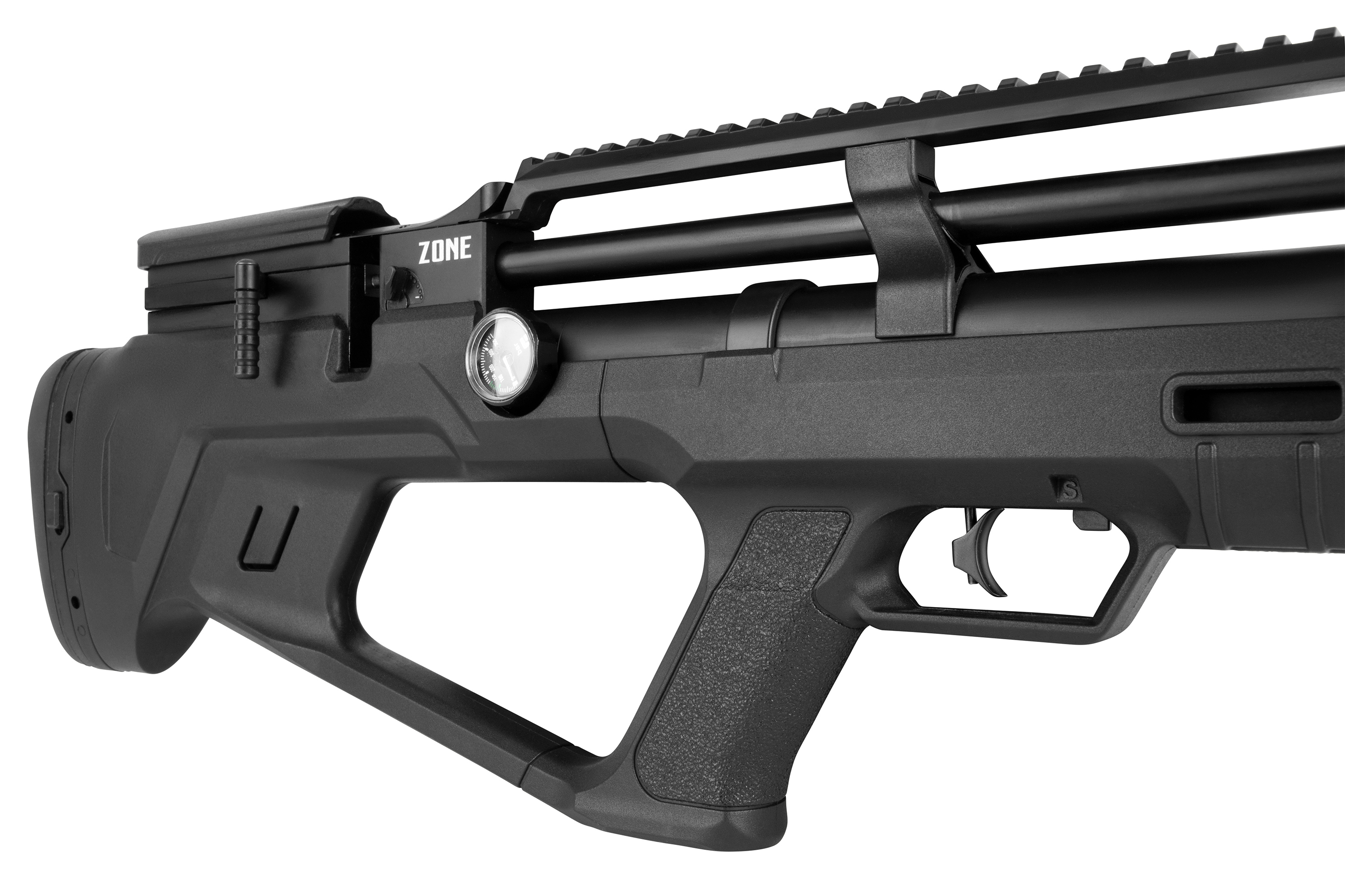 Das Reximex Zone Luftgewehr im Bullpup-Design ist eine exzellente Wahl für alle, die auf der Suche nach einem qualitativ hochwertigen und zuverlässigen Pressluftgewehr sind. Mit einer beeindruckenden Präzision und einer Leistung von ca. 7,2 Joule ist dieses Gewehr ideal für Freizeit- und Sportschützen geeignet. Es verfügt über eine fortschrittliche Dämpfungstechnologie für einen reduzierten Rückstoß. An der Unterseite kann bei Bedarf an dem M-LOK Handguard eine kurze Picatinnyschiene (inkl.) angebracht werden, um ein Zweibein zu montieren.