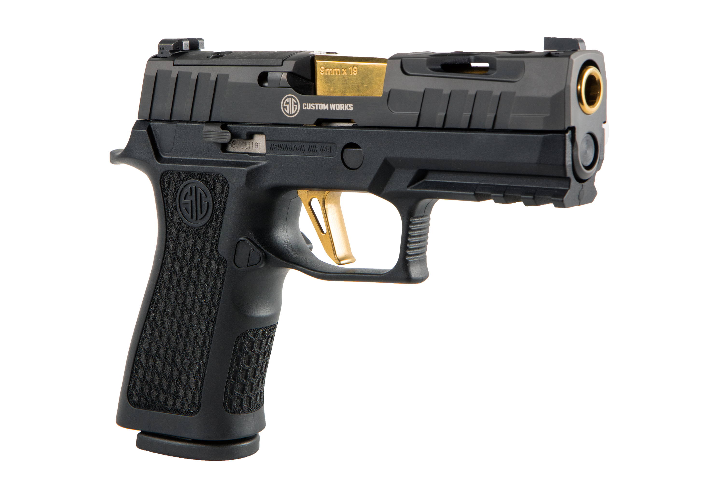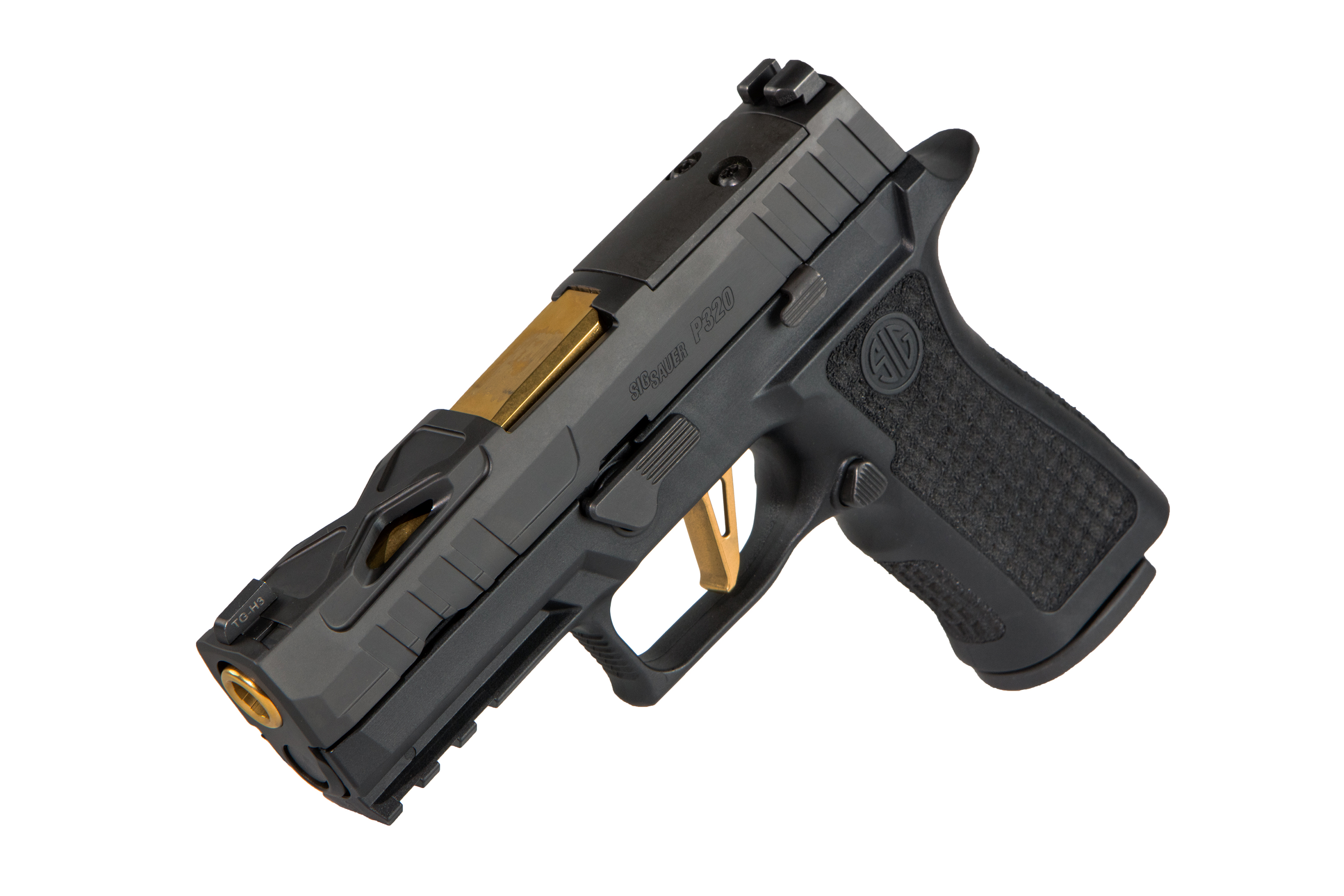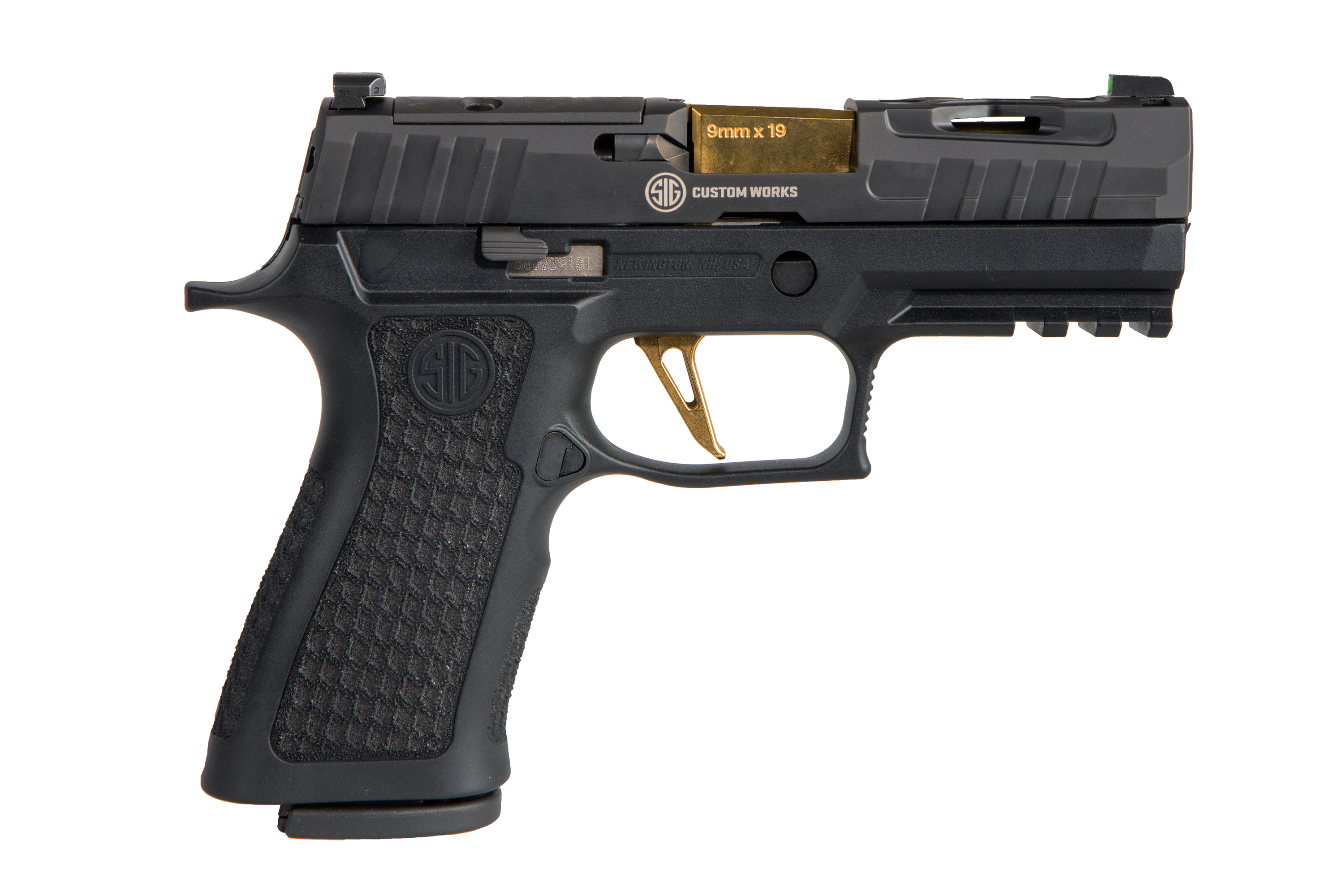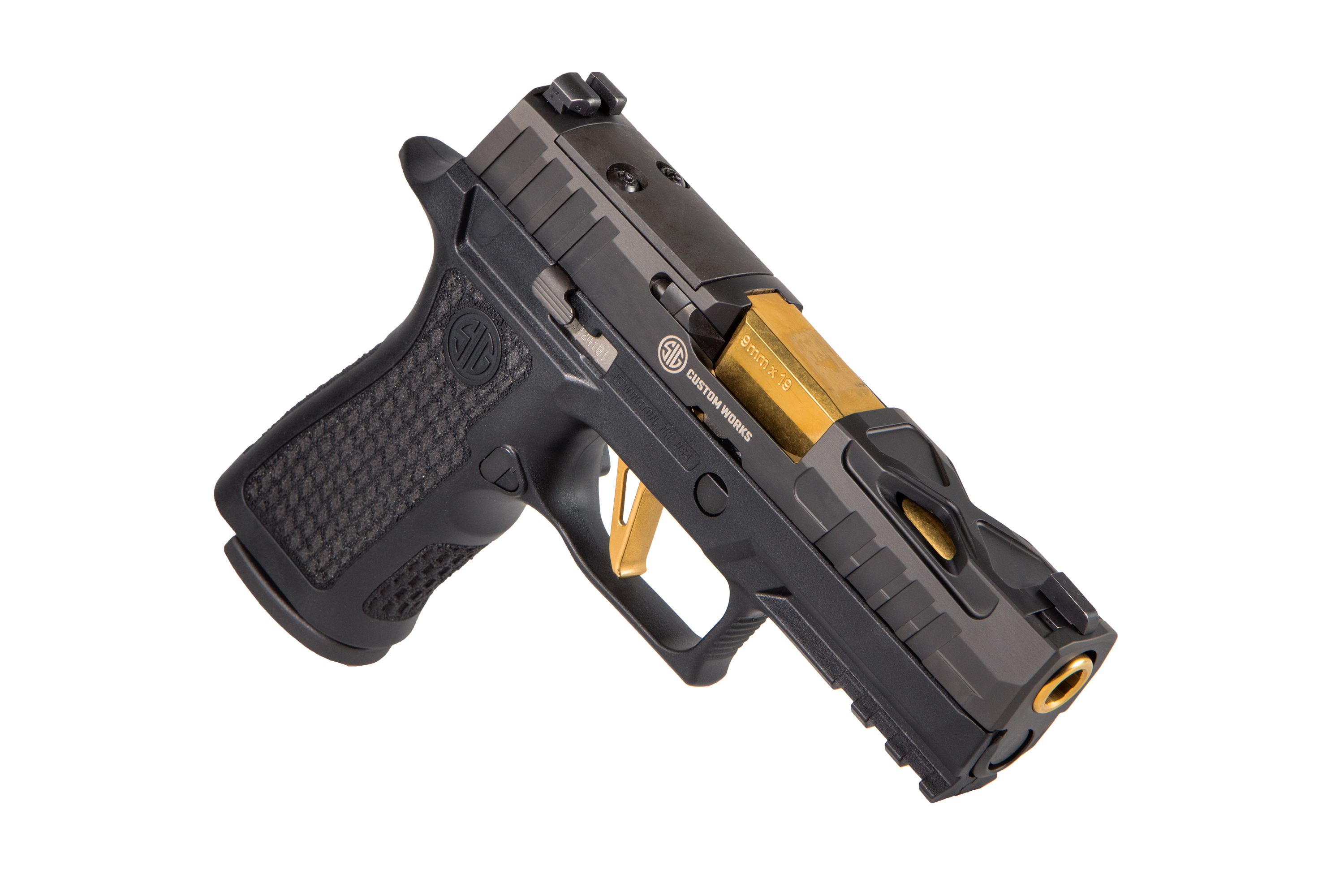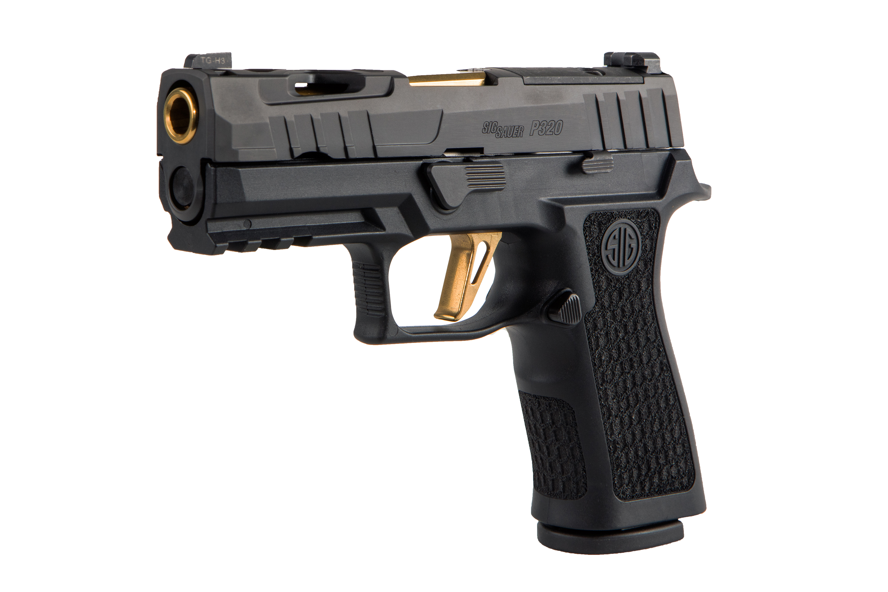 Die neueste Kreation von SIG Custom Works verleiht der beliebten P320 ein ganz neues Maß an individuellem Stil. Die Spectre-Griffmodule werden bei SIG SAUER mit einem speziell definierten Muster lasergraviert, das eine aggressive und dennoch sehr ansprechende Textur für einen kontrollierten Griff liefert. Der Nitron-Schlitten der P320 Spectre Gold ist mit der exklusiven Spectre X-Gravur, Skelettierungen und abgestuften Durchladerillen sowie einem TiN- behandelten goldfarbenen Lauf ausgestattet. Diese exklusiven Neuerungen werden gepaart mit den XSeries-Funktionen, wie dem skelletierten, flachen Abzugszüngel und der abnehmbaren Visierplatte.