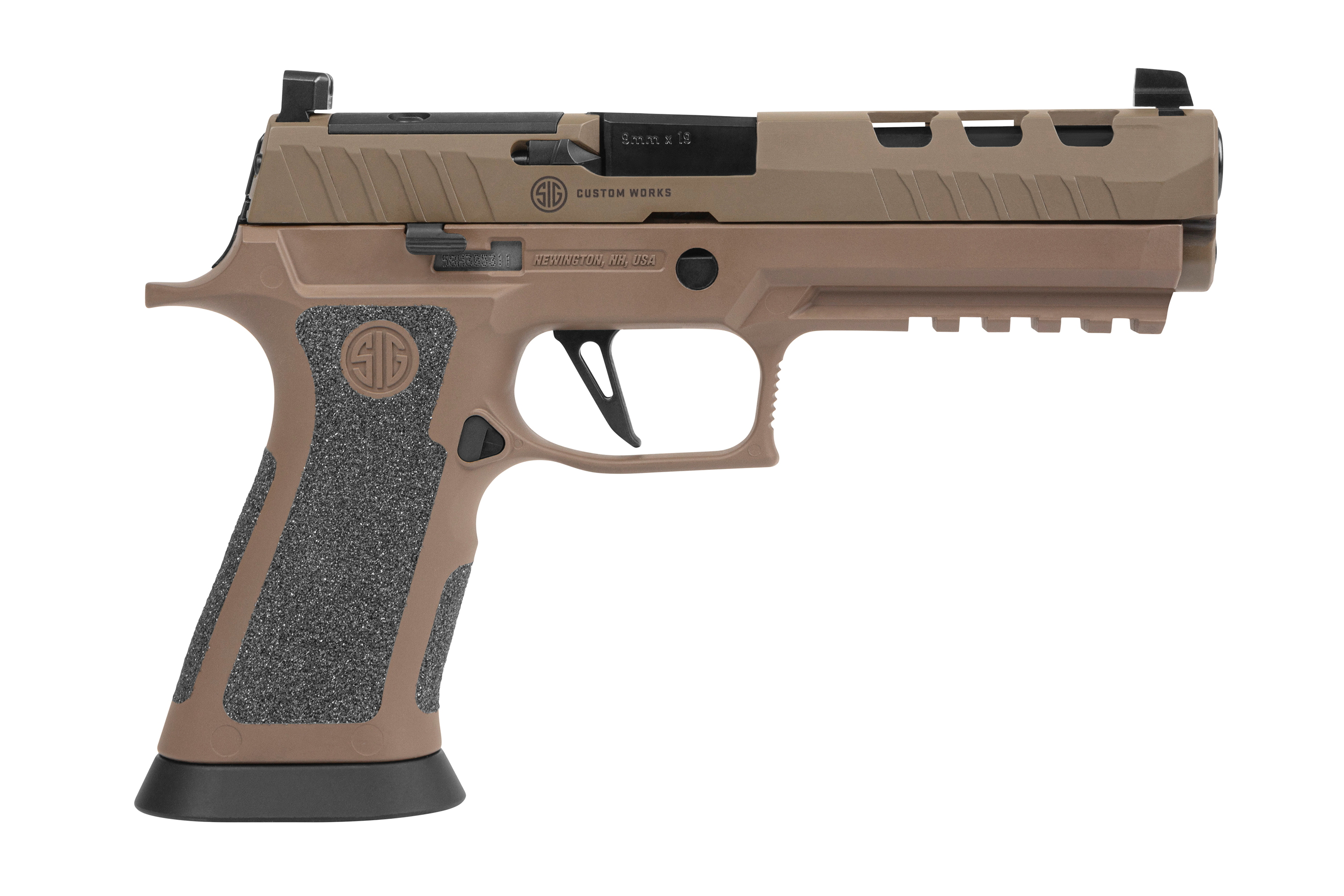 - Auf Basis einer P320 XFIVE Legion mit Optic Ready Schlitten und erhöhtem Kontrastvisier (DeltaPoint Pro Footprint)