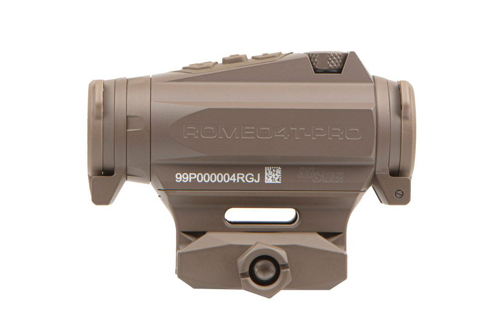 Das SIG SAUER ROMEO4T PRO Leuchtpunkt Visier bietet zwar die gleiche optische Leistung und Langlebigkeit wie das ROMEO4T, wurde aber für den professionelle Einsatz aufgerüstet. Dank des Quad Absehens, kann aus vier Absehen ausgewählt werden. Die Beleuchtungsregelung wurde nach oben verlagert, sodass die Einstellung bequem mit beiden Händen vorgenommen werden kann und nicht vom Brustgeschirr oder Plattenträgern verdeckt wird.