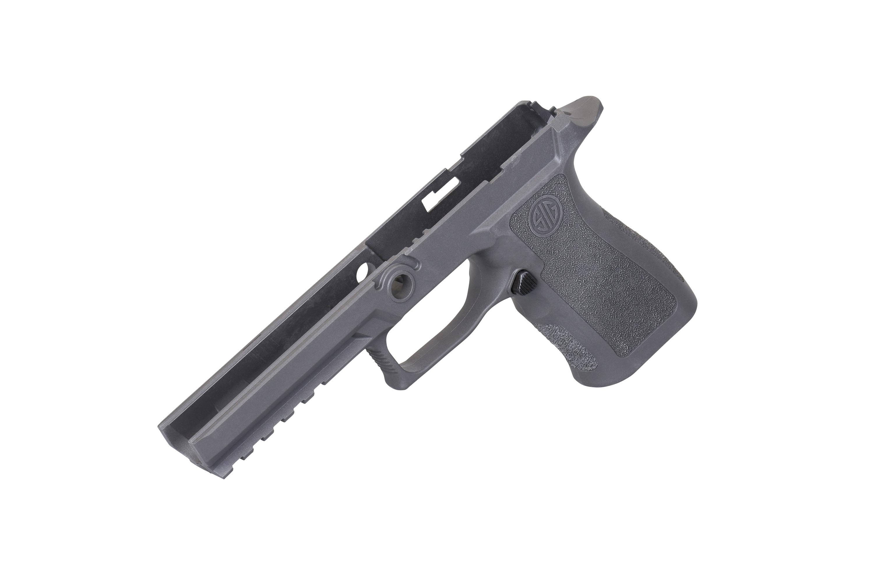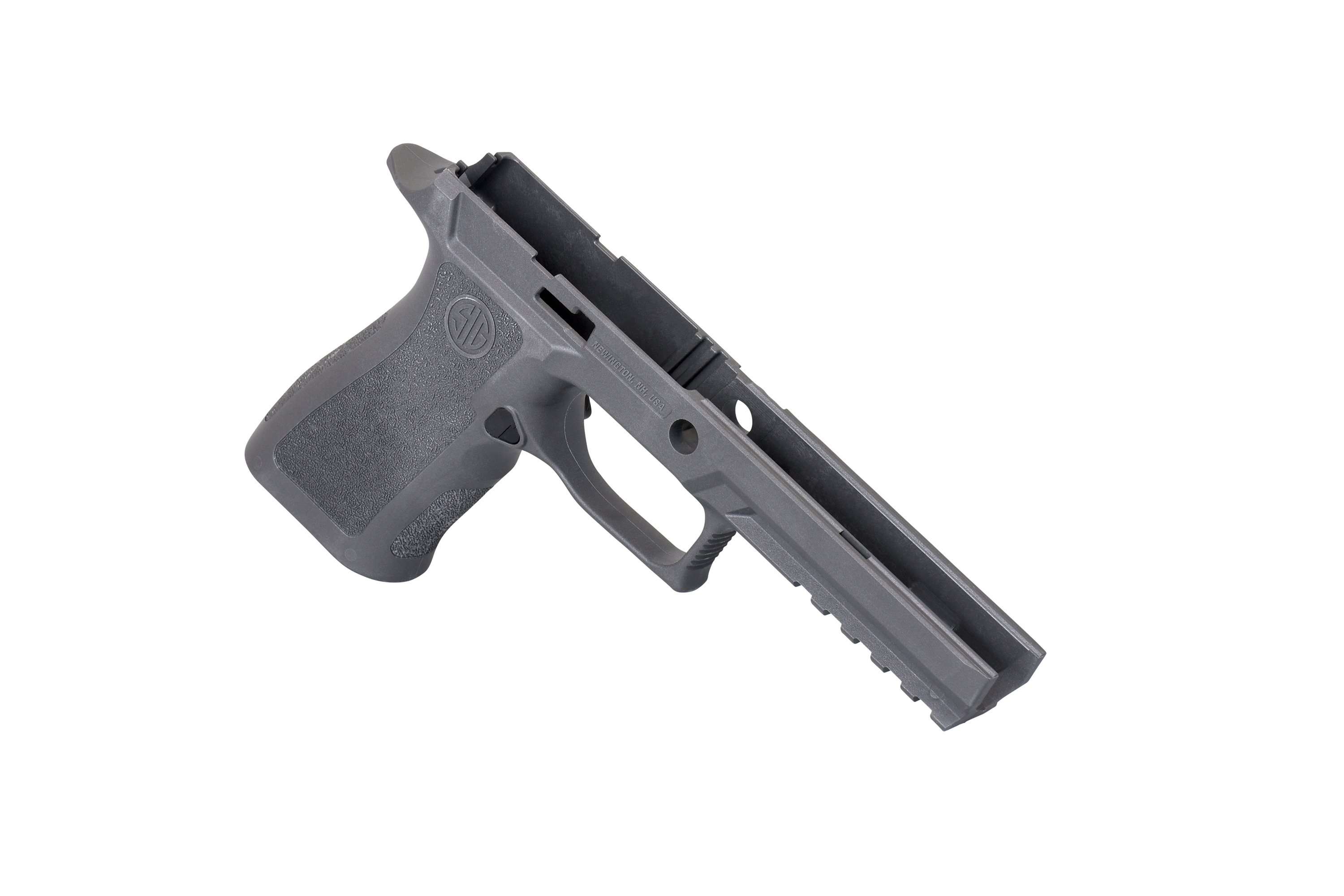 Das Griffstück bietet im Vergleich zum Standard-Griffstück der P320 neben dem höheren Gewicht eine Picatinny-Schiene, ein Magwell, einen großen Undercut beim Abzugsbügel und ein Beavertail.