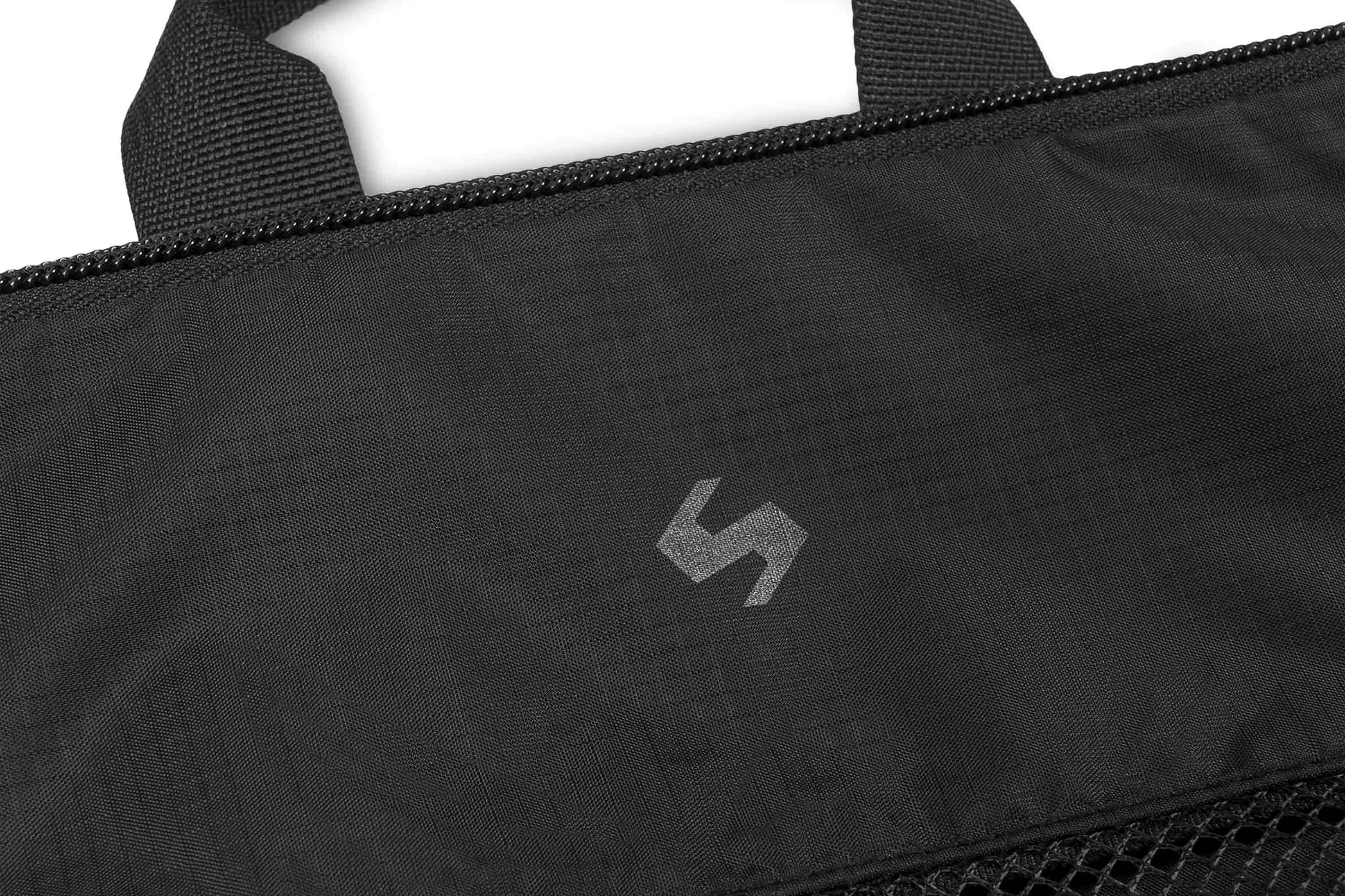 - Robustes RipStop-Nylon mit Mesh-Einsätzen für Belüftung und Übersicht