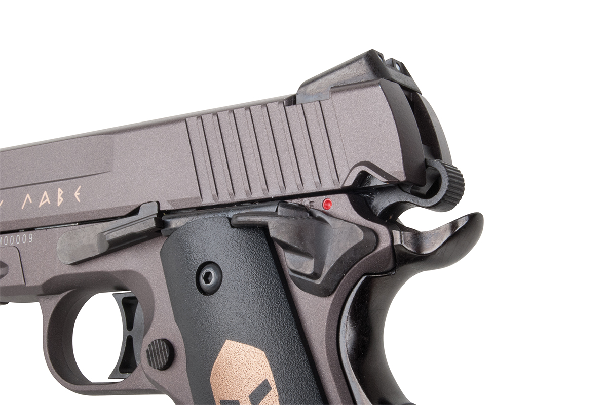 Dieses Sondermodell erhält eine besondere Aufwertung durch das Spartan Logo. Der gelungene Nachbau aus dem Hause Sig Sauer mit einer Energie von ca. 2,5 Joule wird mit 12g Co2 betrieben. Das Vollmetall-Modell verfügt über Kunststoff-Griffschalen, eine Handballensicherung, ein Magazinschnellladesystem, eine 3-Punkt-Visierung und eine integrierte Railschiene. Das starke Blow-Back-System vermittelt ein besonders realistisches Schießerlebnis.