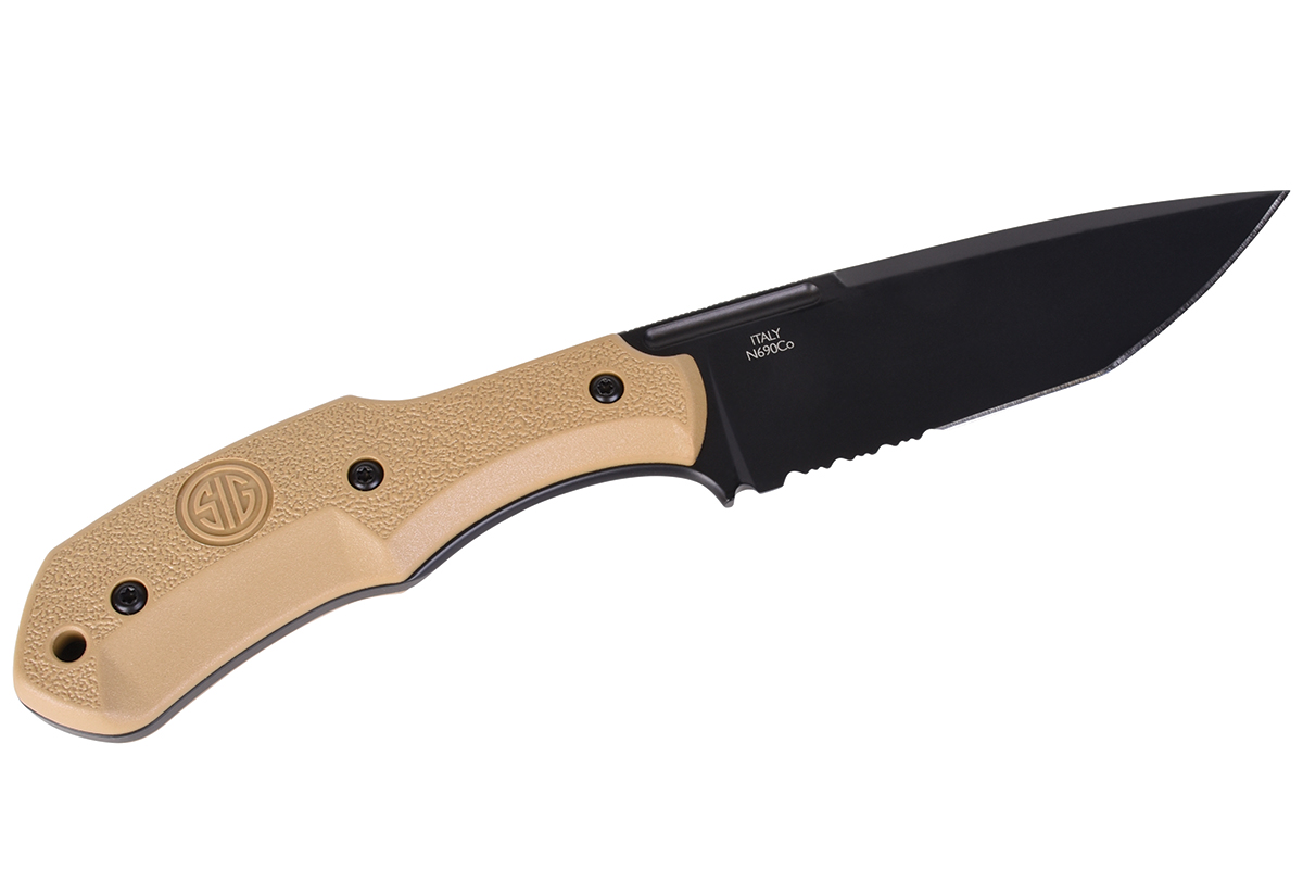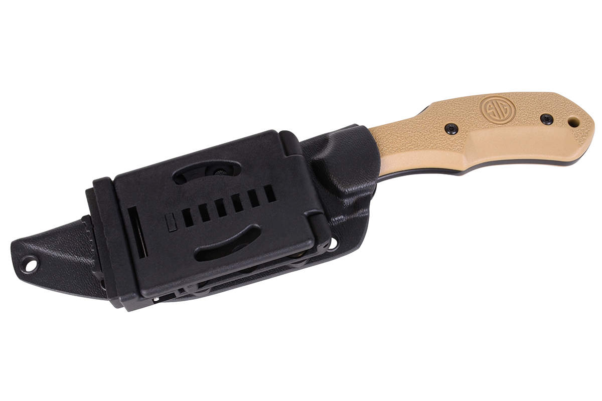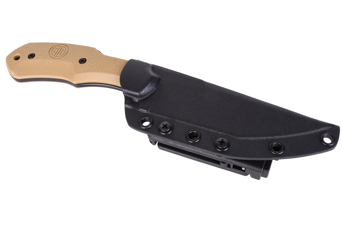 Die Klinge des Sig Sauer Messers besteht aus einem Premium-Edelstahl von Böhler-Udeholm. Durch den Zusatz von Vanadium und Kobalt ist er die optimale Wahl für einen feinen Schliff mit überragender Schnitthaltigkeit. Zusätzlich ist die Klinge mit hoch-korrosions beständigem Keramik in schwarz beschichtet und damit für jeden Einsatz, ob Angeln, Jagen oder auch Camping, tauglich.