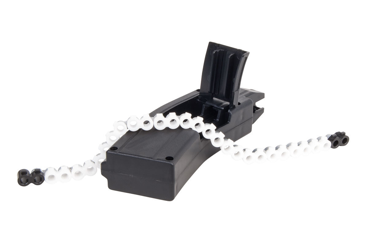 Das Ersatz-Magazin wird inklusive drei nachfüllbaren Transportgurten geliefert.