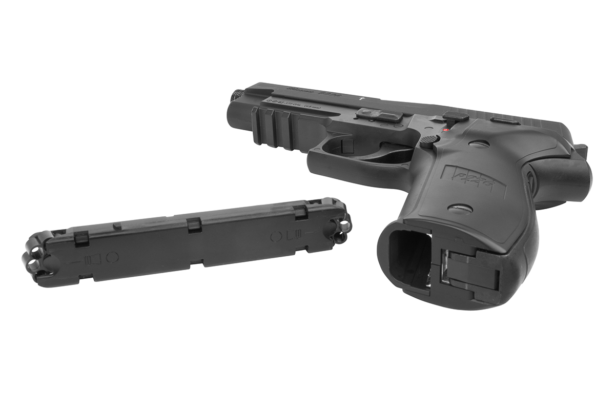 Der hochwertige Nachbau aus dem Hause Sig Sauer wird aus Vollmetall gefertigt und verfügt über eine integrierte Montageschiene, eine 3-Punkt-Visierung und ein 2x8 Schuss Wechselmagazin. Das hohe Gewicht und der repetierende Schlitten vermitteln ein reales Schiesserlebnis. Das Modell ist Silencer kompatibel und bietet einen einfachen Kartuschenanstich.