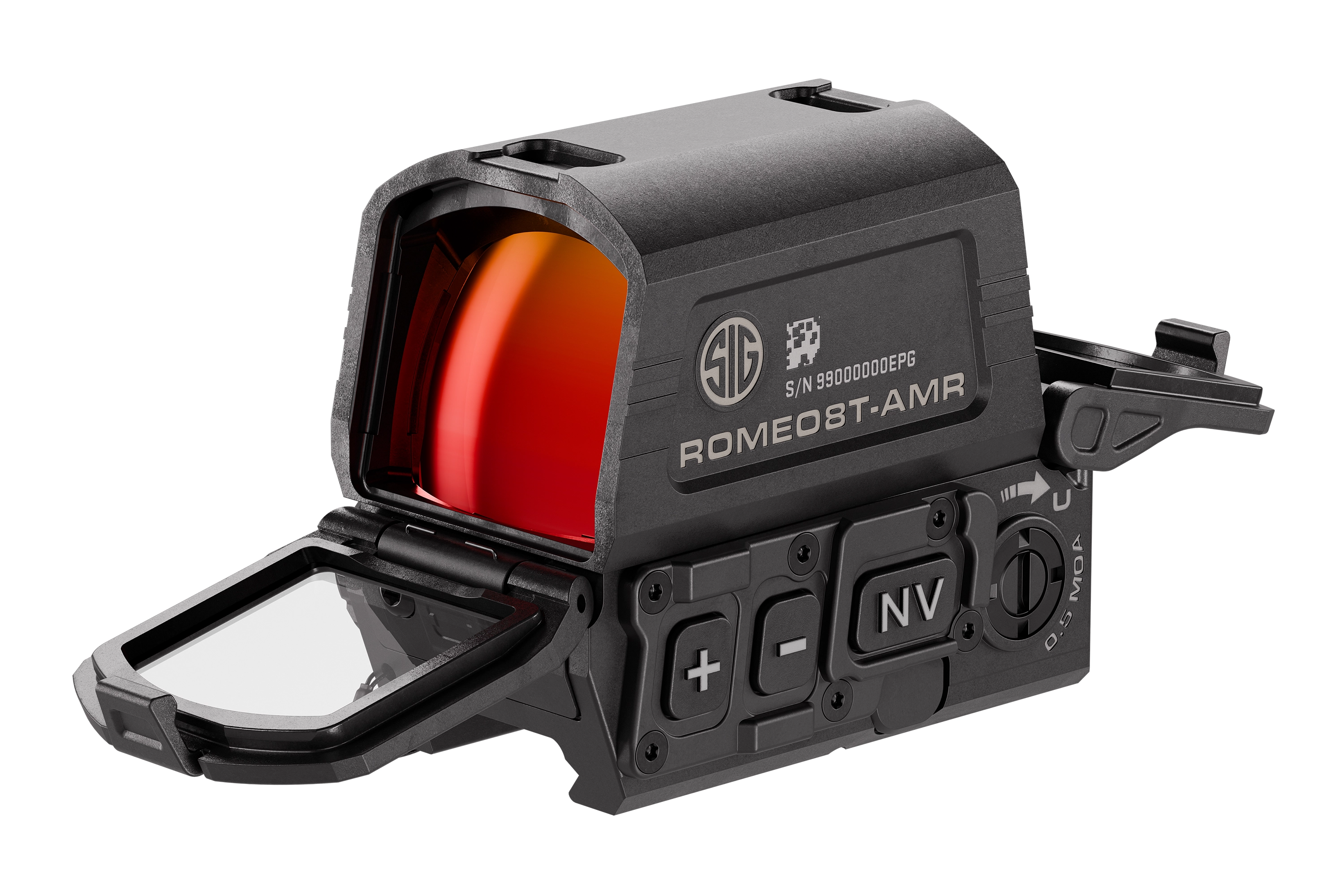 In Kombination mit einem AMR-fähigen Magnifier passt das ROMEO8T-AMR die Absehenkonfiguration automatisch an, sobald der Magnifier ein- oder ausgeschwenkt wird. Die große 40-mm-Objektivlinse sorgt für ein weites Sichtfeld und hohe Situationsübersicht. Hochwertige Linsenbeschichtungen gewährleisten eine klare Abbildung und ermöglichen den Einsatz mit Nachtsichtgeräten.