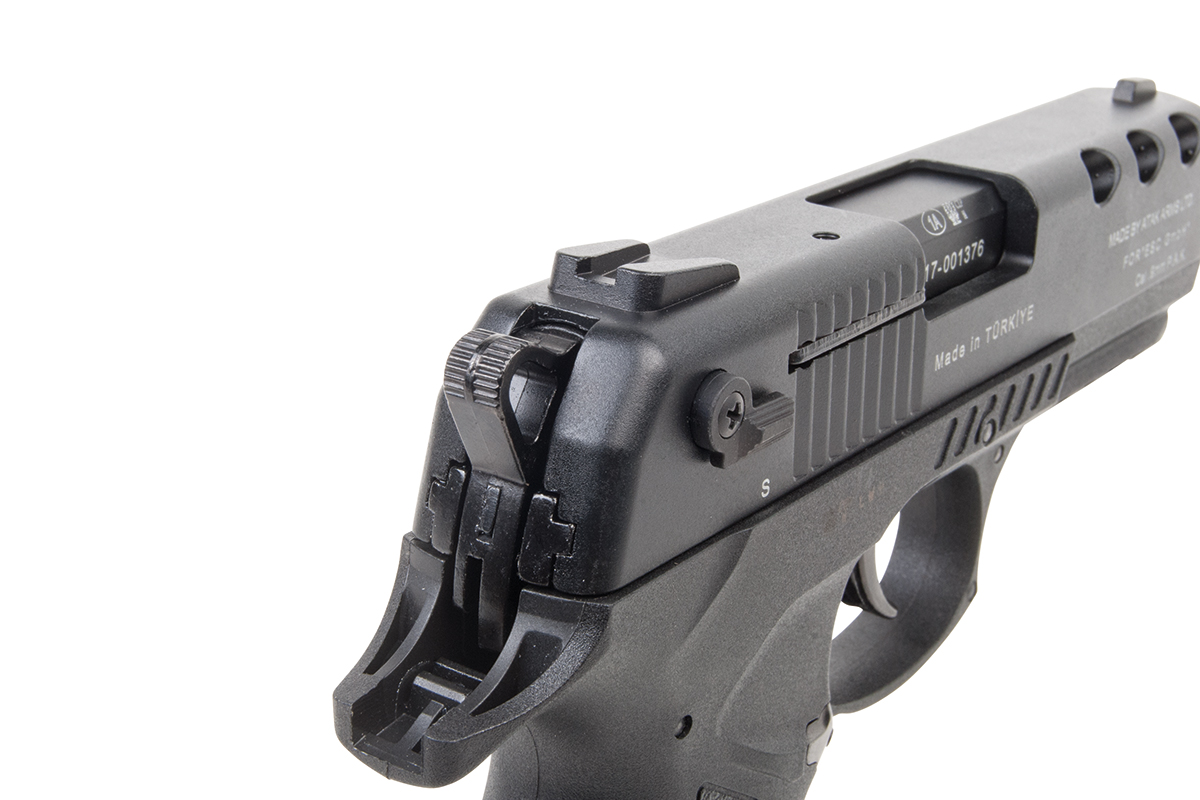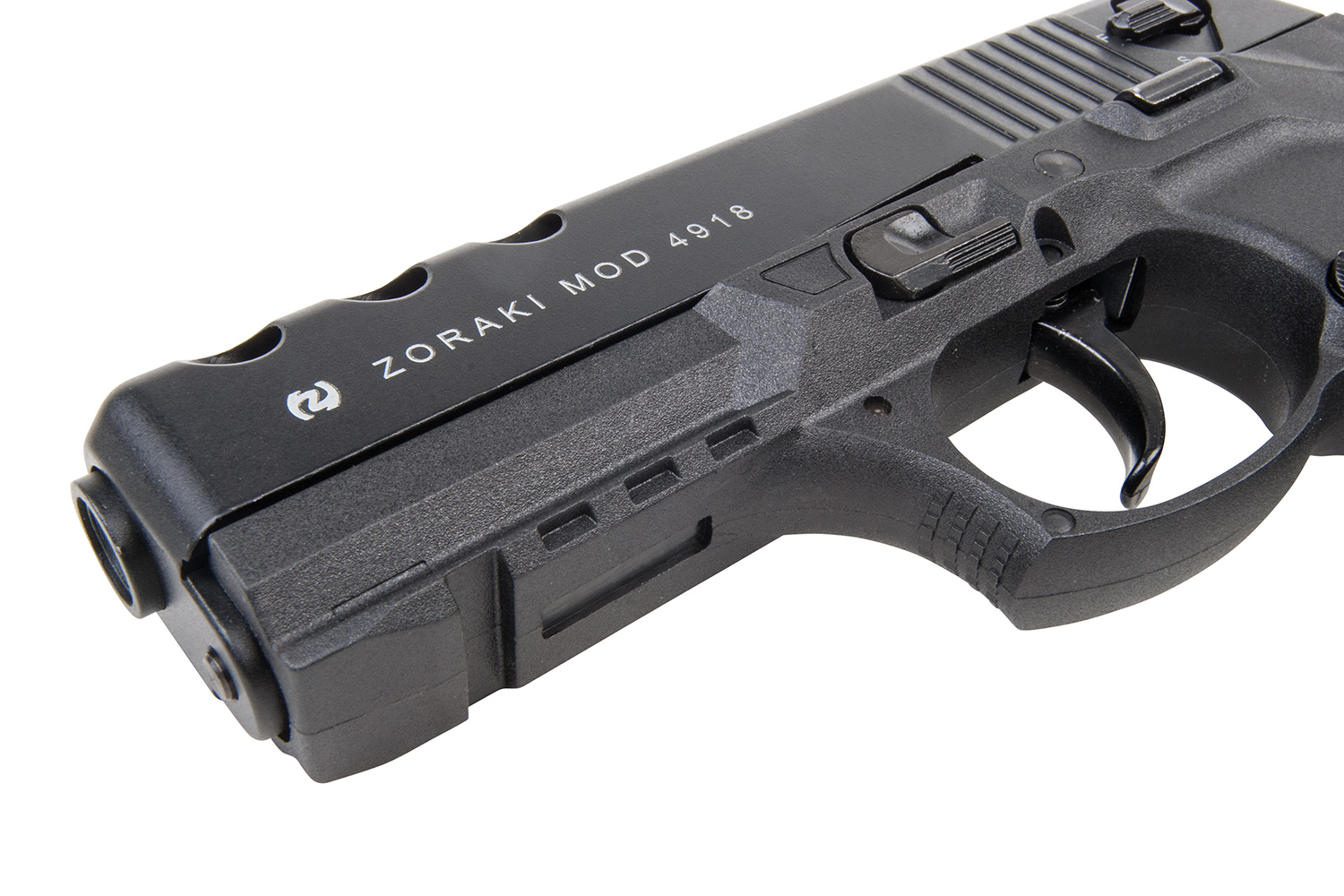 Die Gas-Signalpistole aus dem Hause Zoraki verfügt über einen Polymer-Body, stahlverstärkte Funktionsteile, eine integrierte Railschiene und einen Double-Action Abzug. Sie kann mit wenigen Handgriffen zerlegt werden.
