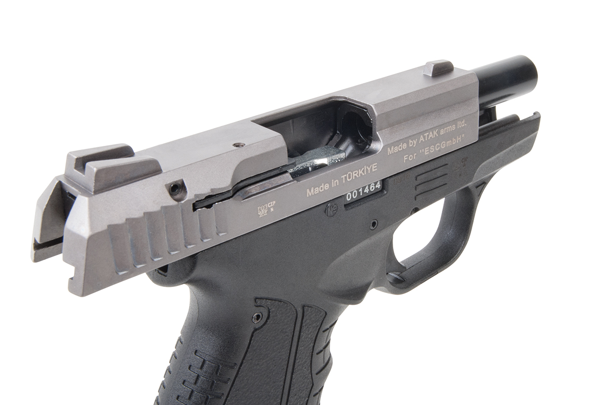 Moderne und kompakte Gas-Signalpistole mit ergonomischem Griffstück, stahlverstärkten Funktionsteilen und Single-/Double-Action Abzug. Sie kann mit wenigen Handgriffen zerlegt werden.
