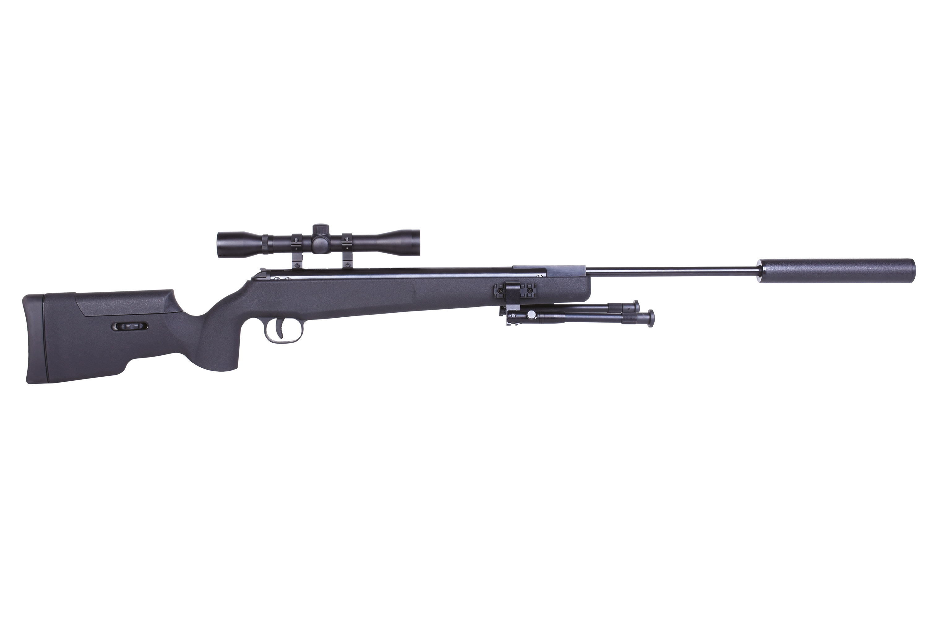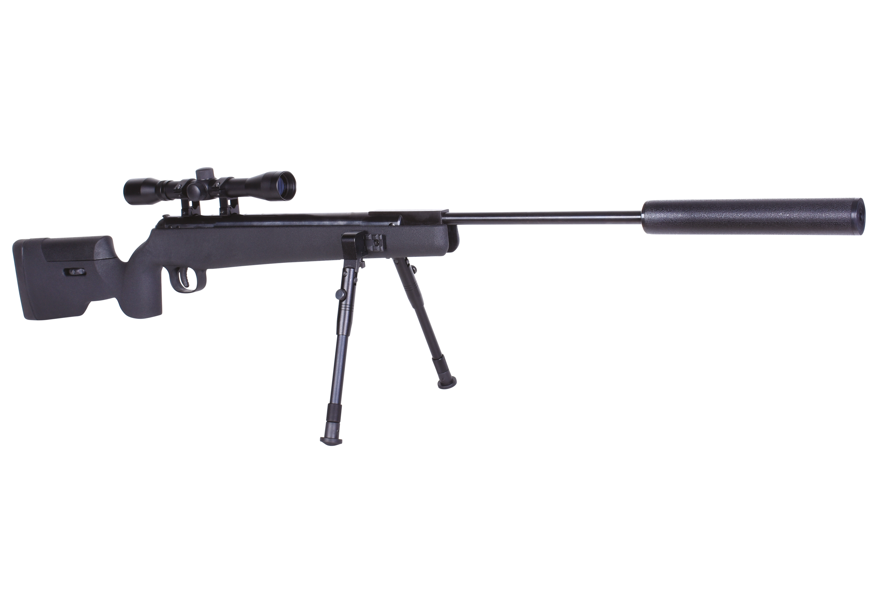 Das moderne airmaX® Luftgewehr SR1250S wird aus Metall und ABS-Kunststoff hergestellt und verfügt über eine verstellbare Schaftbacke, ein einstellbares Zweibein mit Klickmontage, ein Zielfernrohr 4x32 inklusive Zielfernrohrmontage und einem Schalldämpfer.